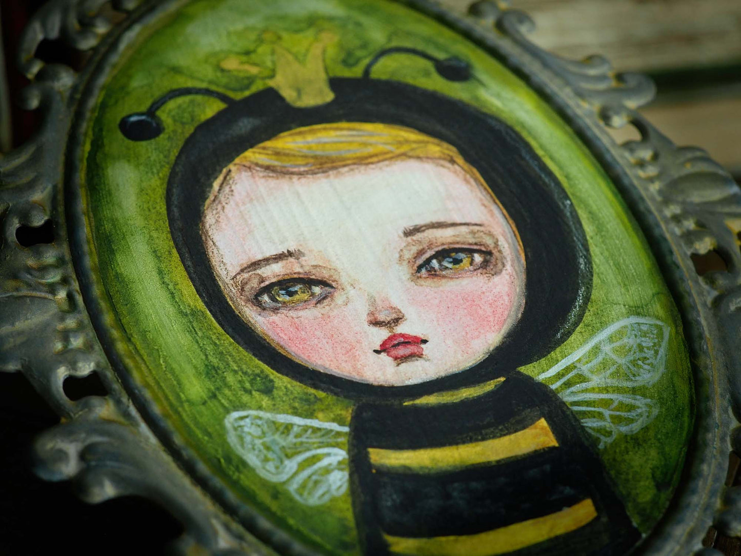 The bee watercolor painting has Danita whimsical spirit. A moment frozen in time leaving the viewer to wonder, what happened before? What will happen next?