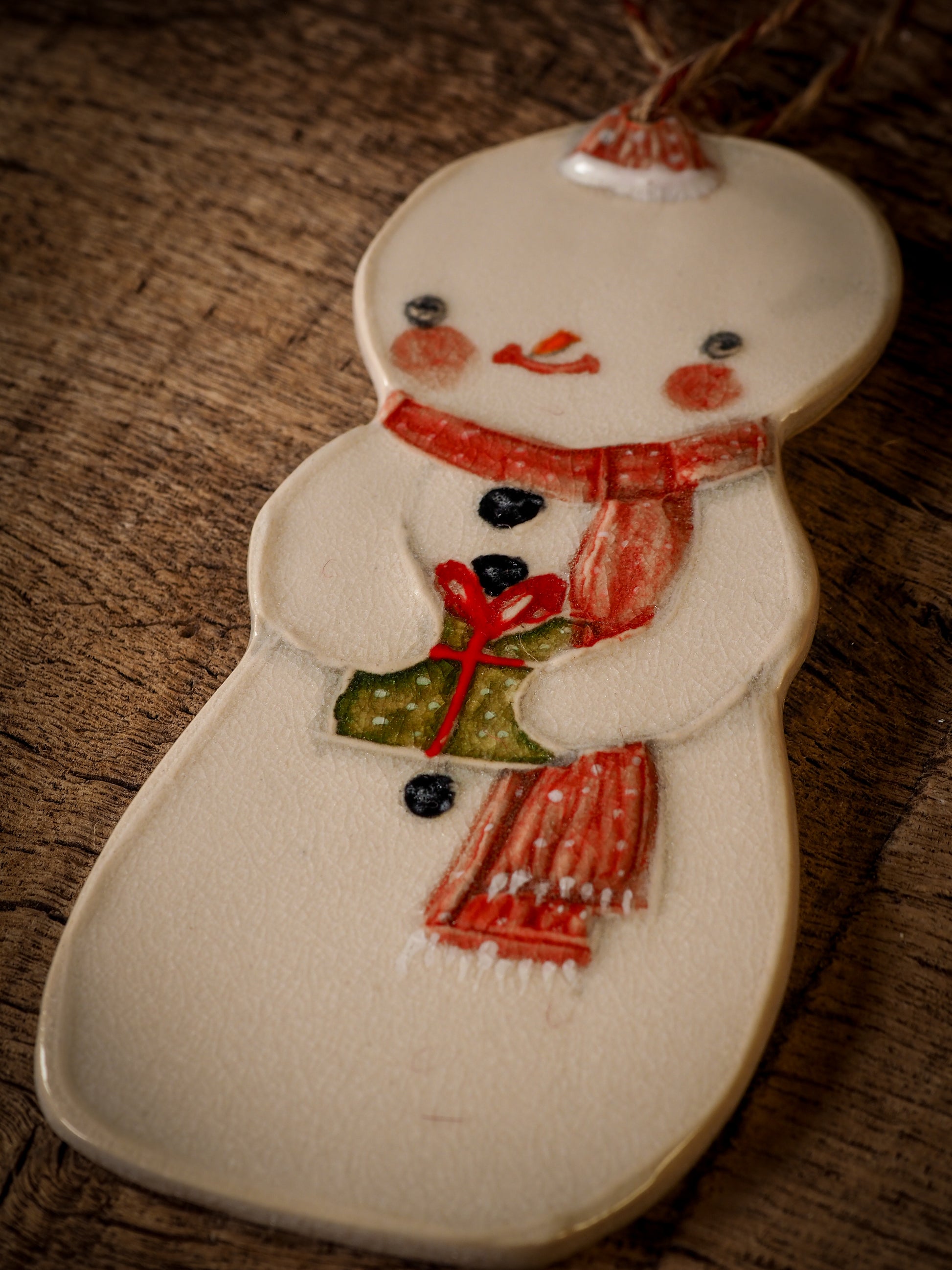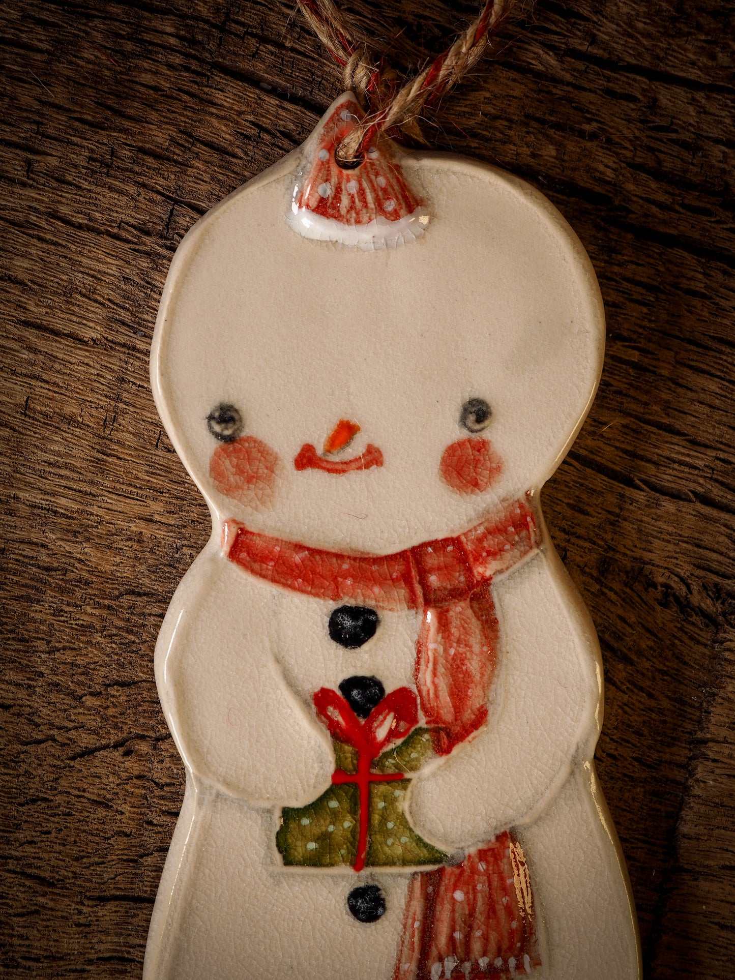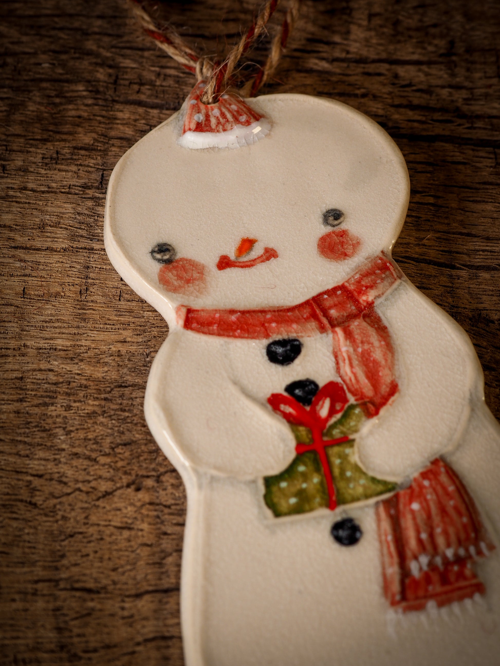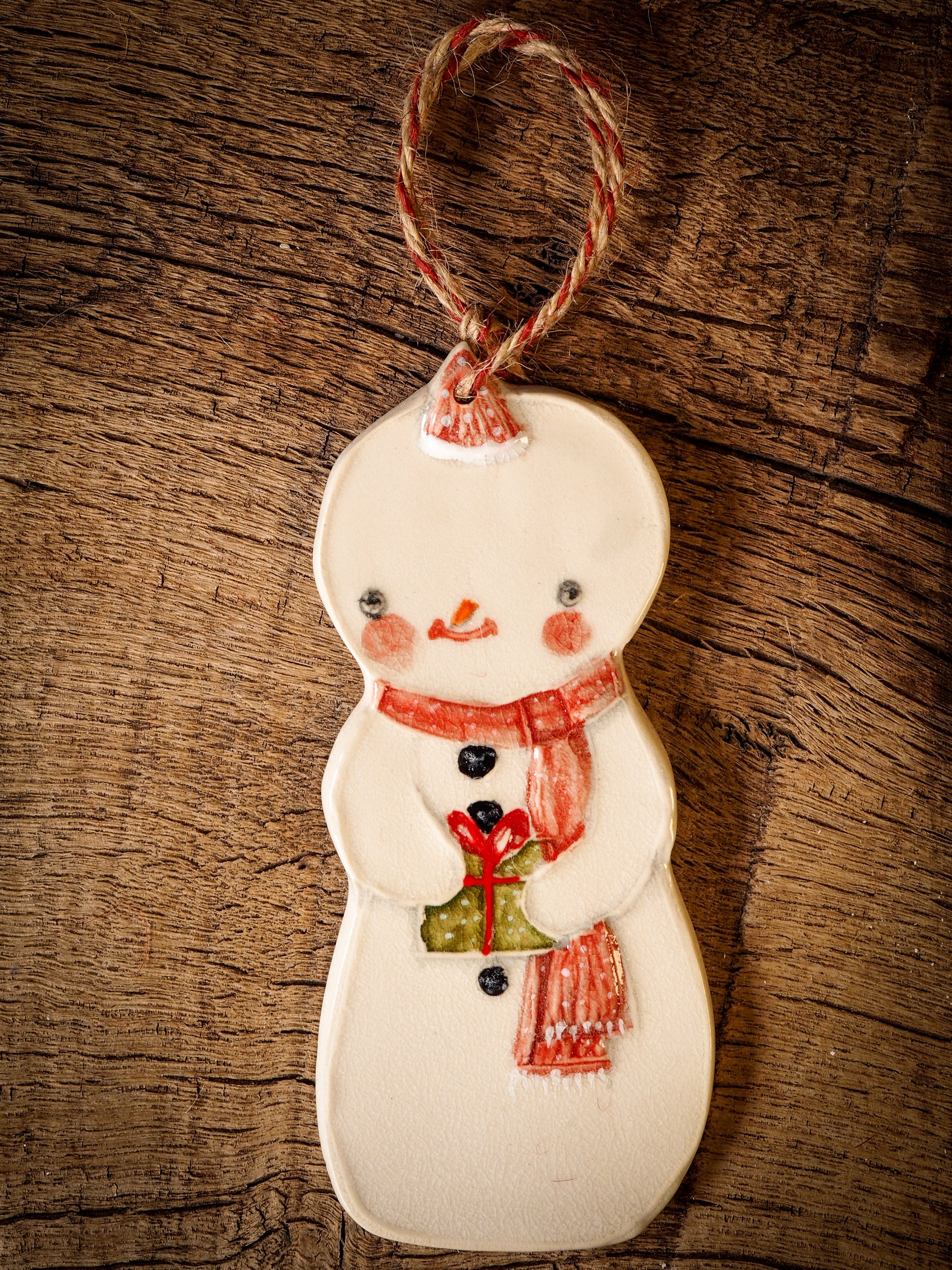 Totally hand made on my studio, each of my ornaments is hand painted, fired twice on a kiln at more than 2000 Degrees, then finished with a beautiful twine hanger.