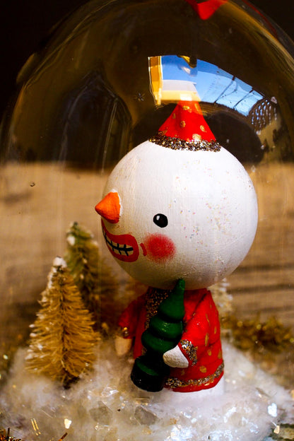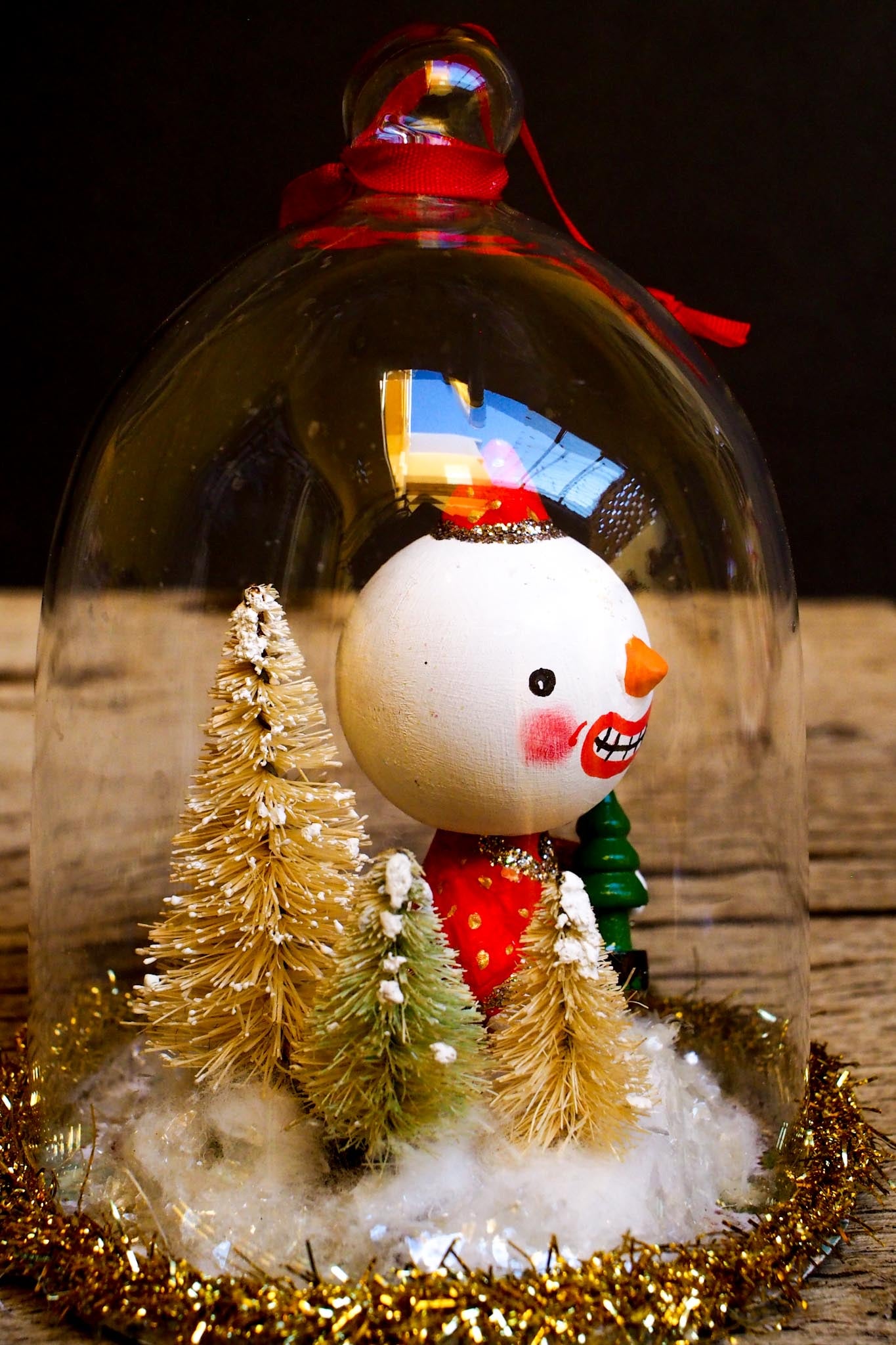 Each doll is hand painted, with a beautiful face and very detailed eyes and other facial details. Their transparent dome catches every shimmering reflection if you put them near Christmas lights. Imagine them lighted by a fireplace or a Christmas tree!