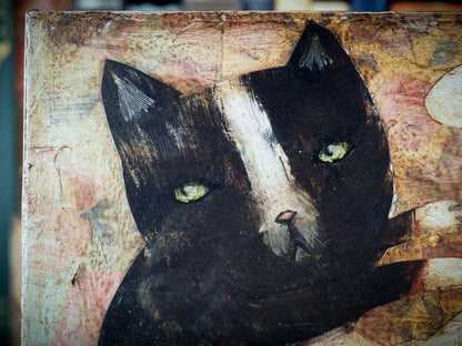 This is an original cat painting by Idania Salcido, the artist behind Danita Art.