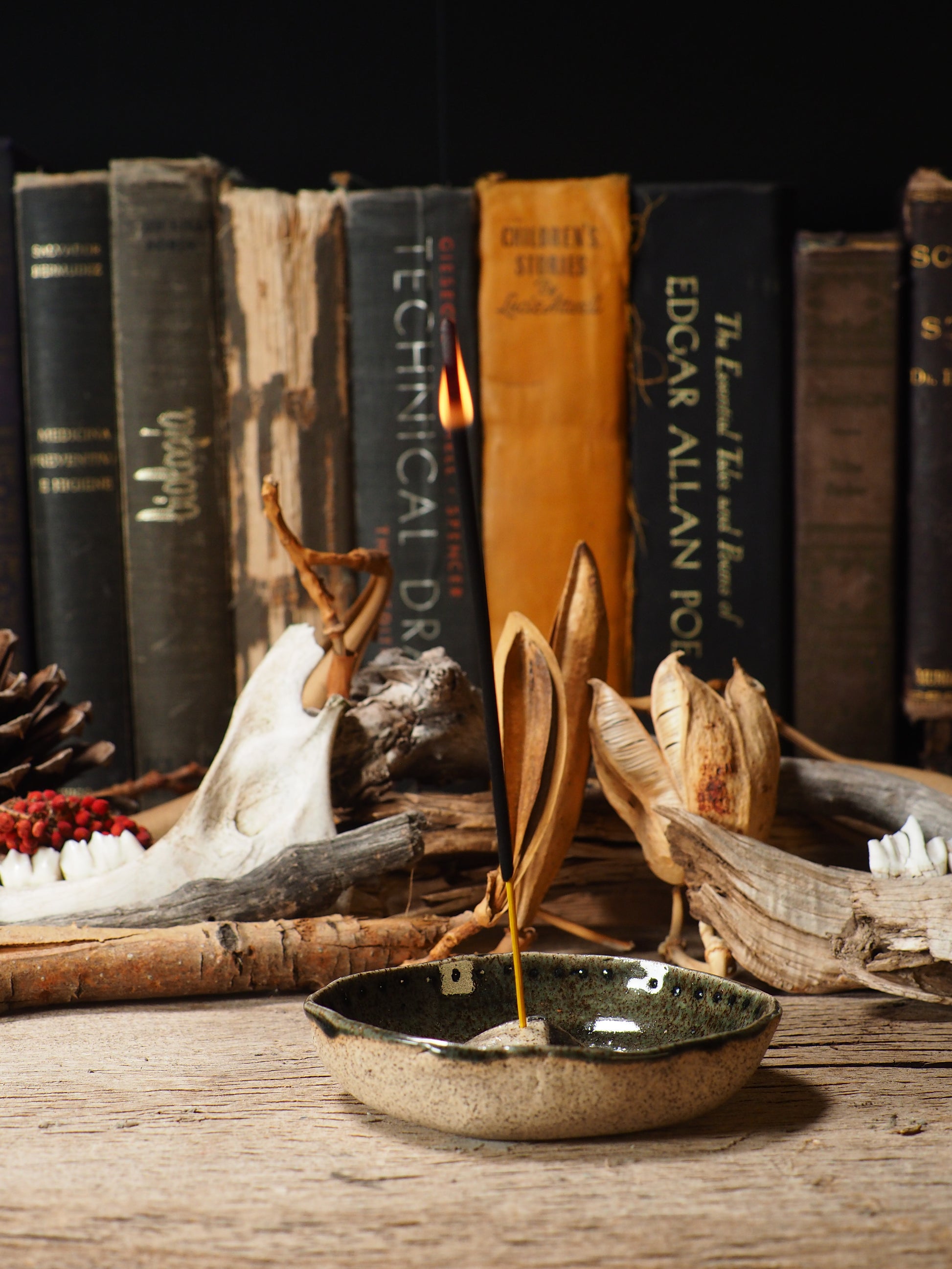 You are looking at an original handmade ceramic incense burner by Idania Salcido, the artist behind Danita Art. Each one is a unique work of art on itself, inspired and designed by me, Danita Art. It is a homage to the mystical world, hand built by me, glazed and fired on my old school kiln.