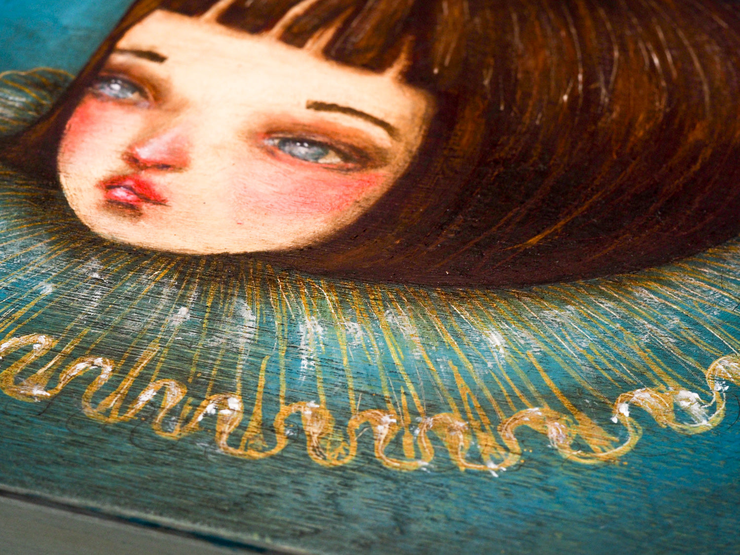Her green eyes and face are full of details that come alive when light hits them, they have this sadness and melancholy about them that has made Danita's art so distinctive.