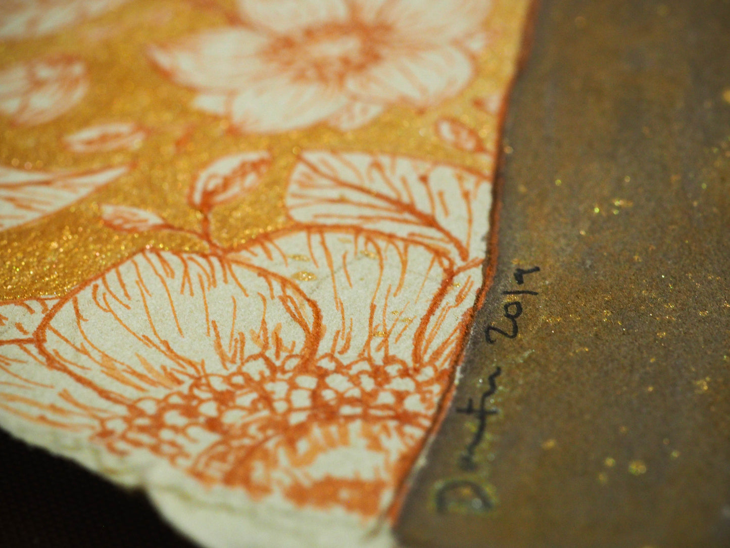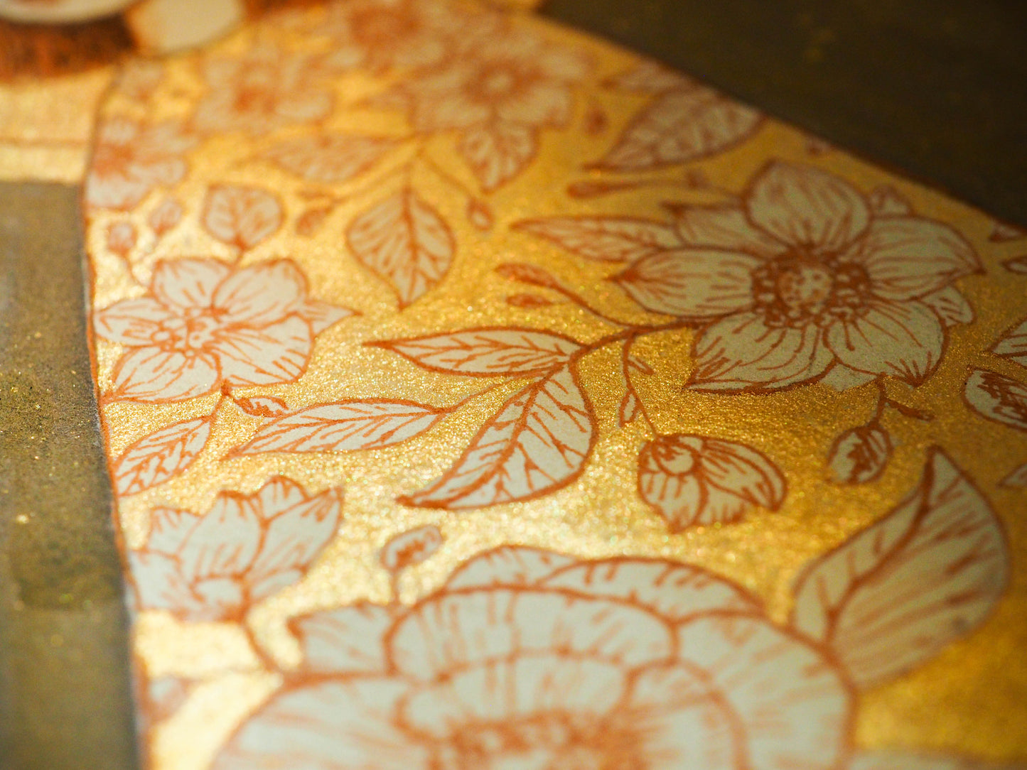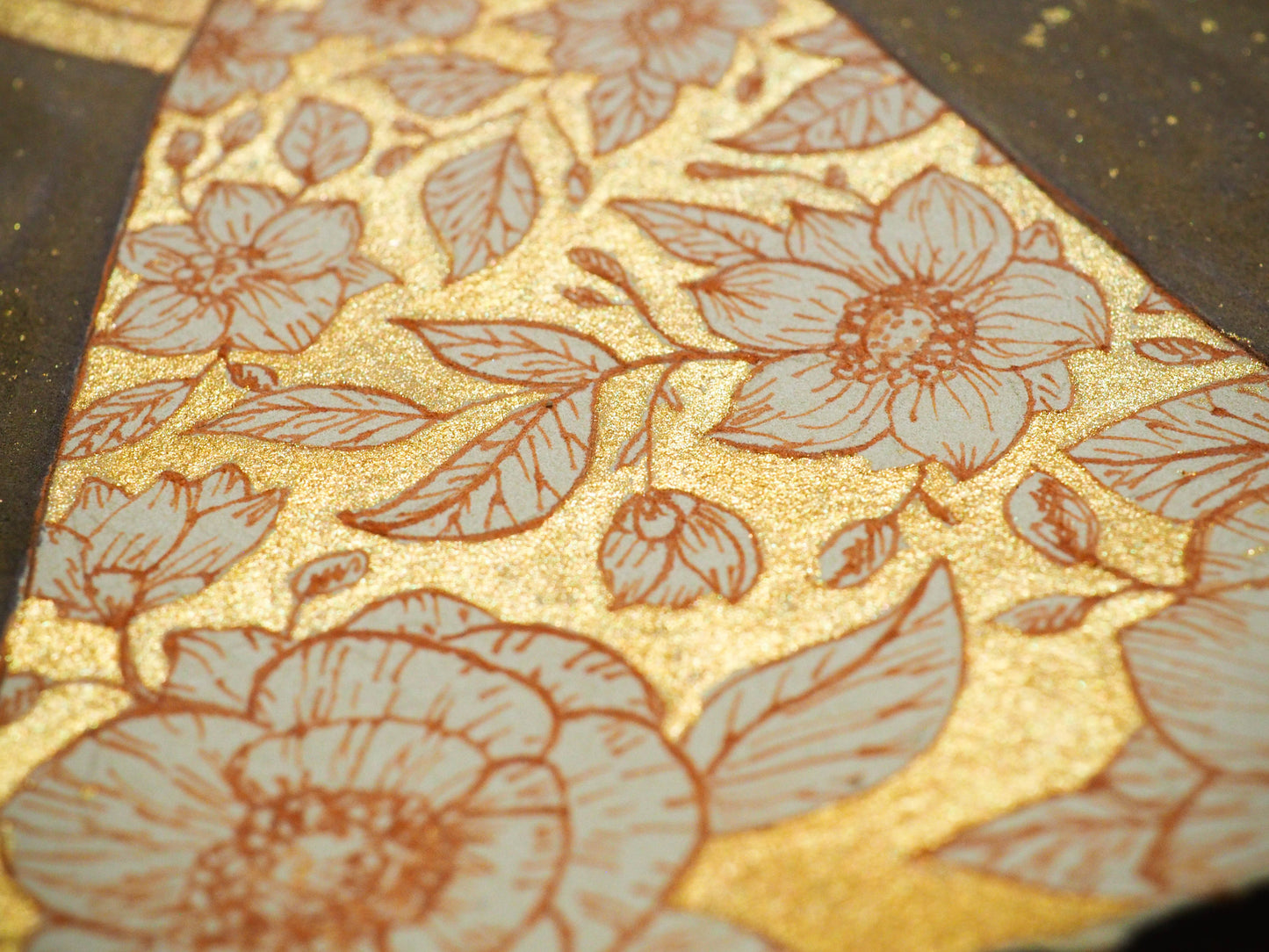 I love the golden swirls and flowers on this beautiful Watercolor, Gold Ink and pencil painting over paper. Everything has a special glimmer when the light hits it and you move it around.