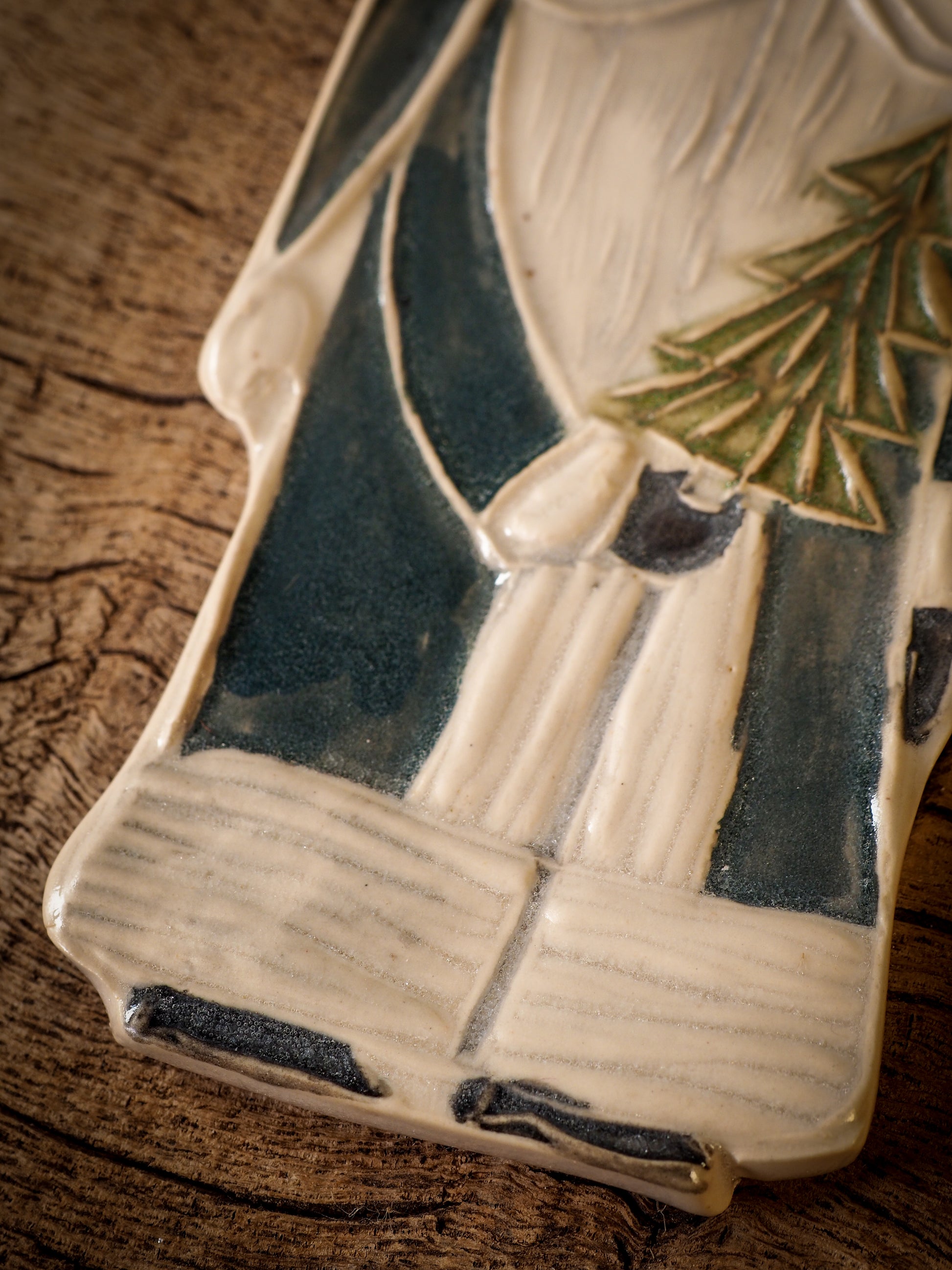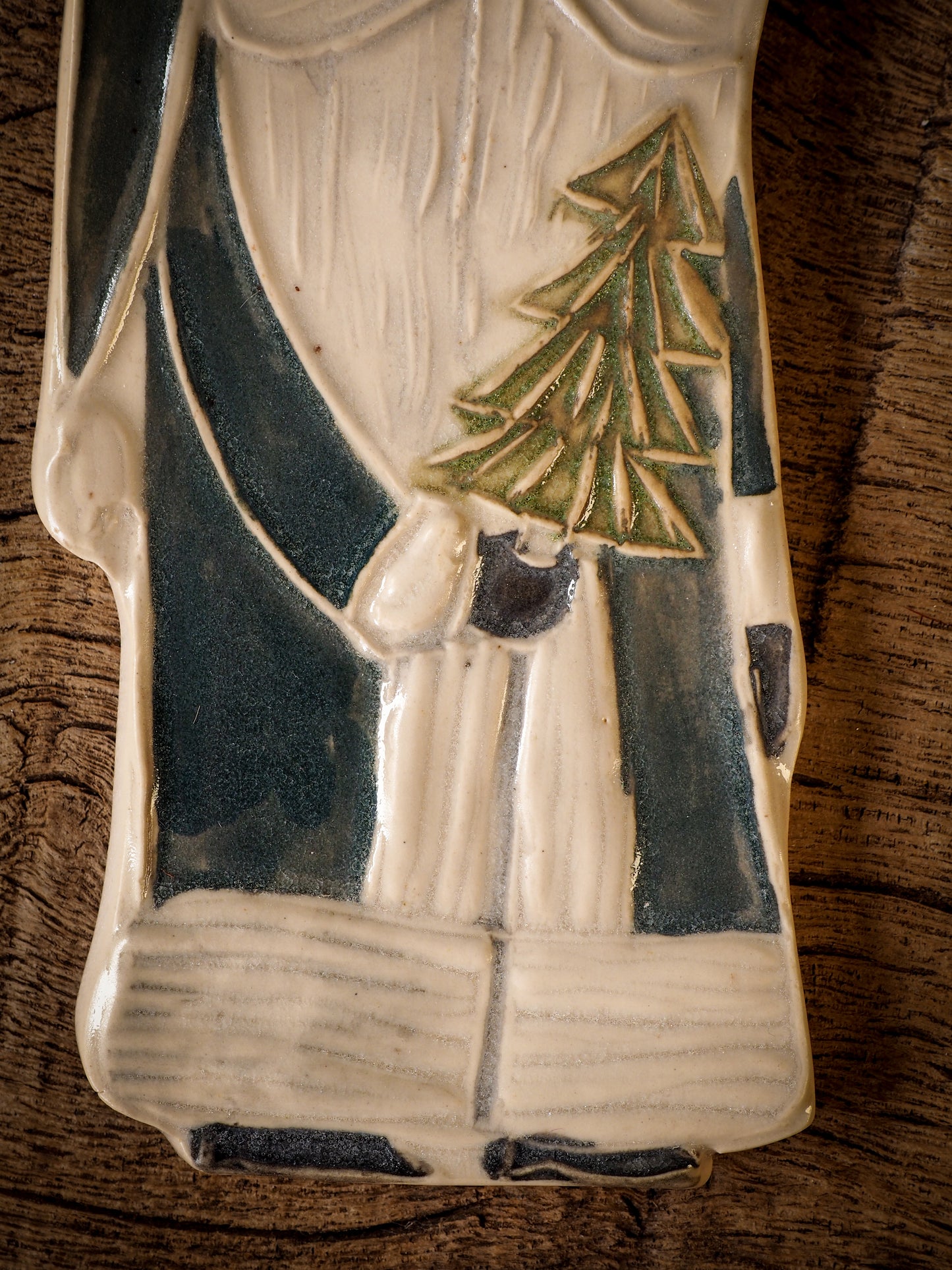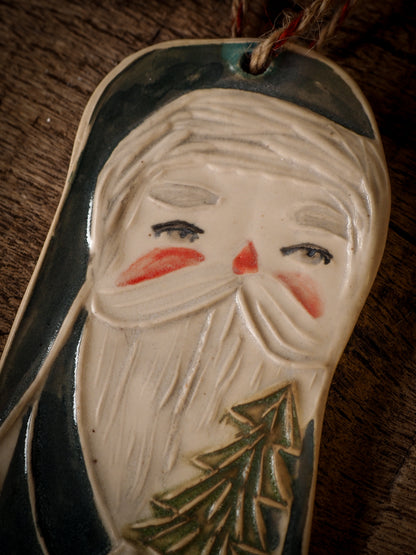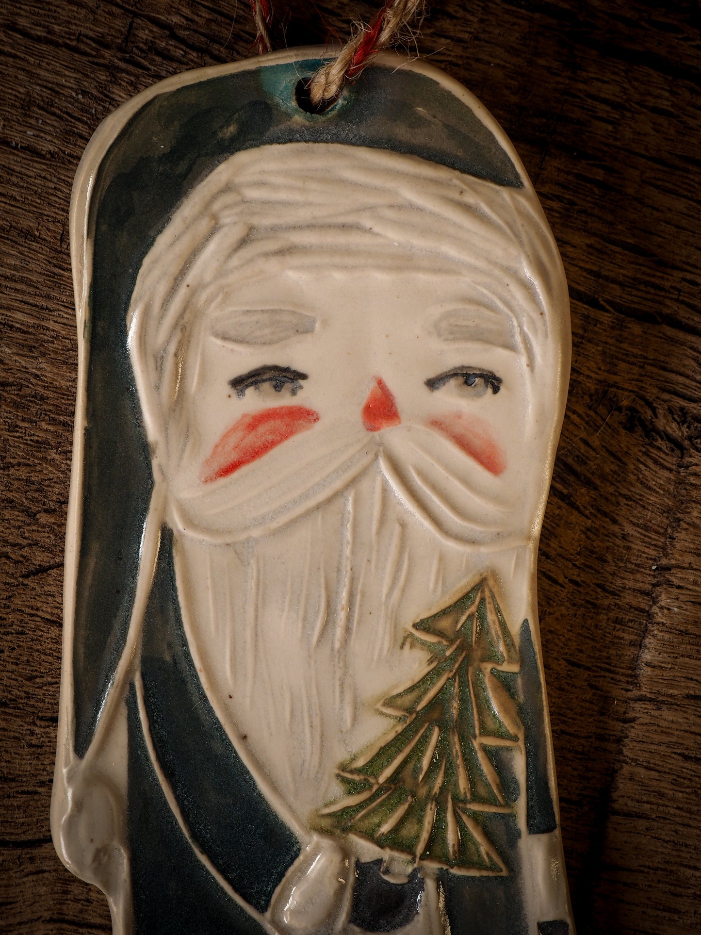 This is an original handmade fire glazed ceramic Christmas tree ornament by Danita Art.