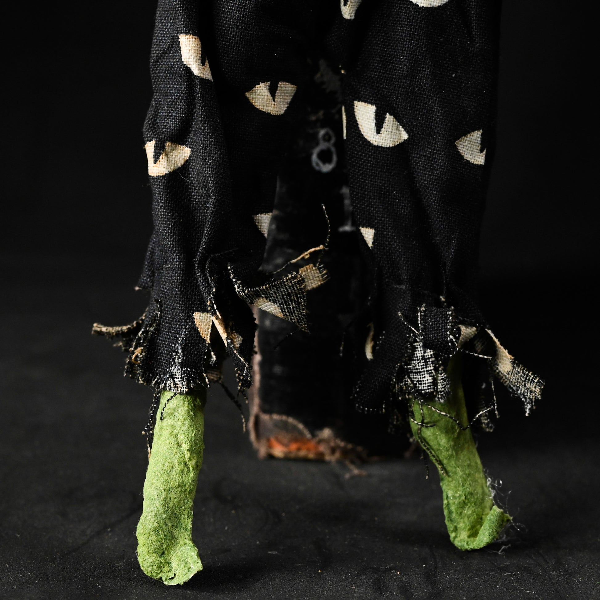This handmade creepy cute Halloween original art doll was made by Idania Salcido, the artist behind Danita Art, using paper clay and fabrics, sculpting a whimsical face with the famous Danita lively eyes, painted with a spark of life on them.