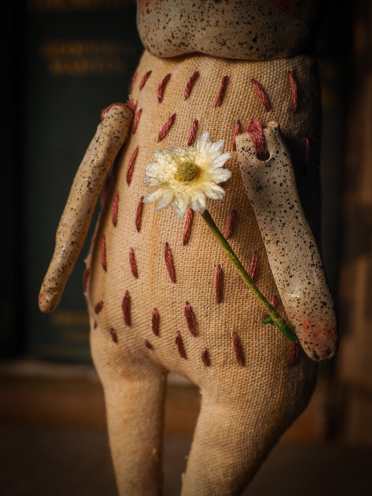 This adorable handmade fabric mini figurine art doll was made by me, Idania Salcido, the artist behind Danita Art.