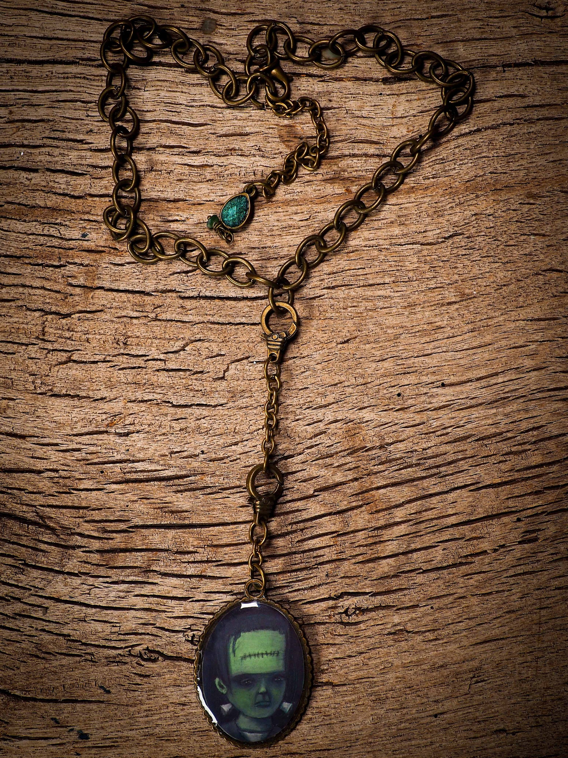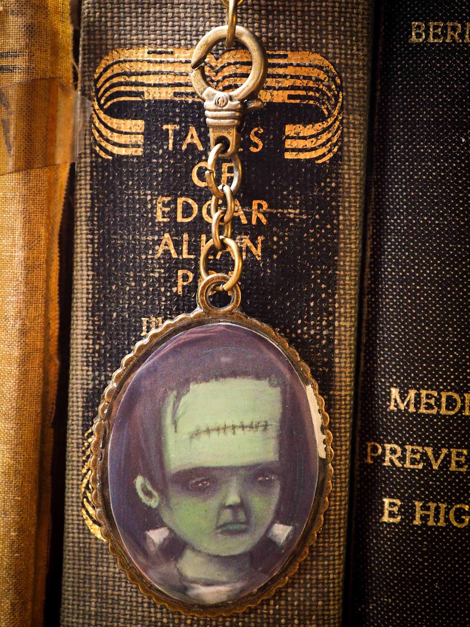 It has a reproduction of an original halloween illustration by Danita, covered in resin.