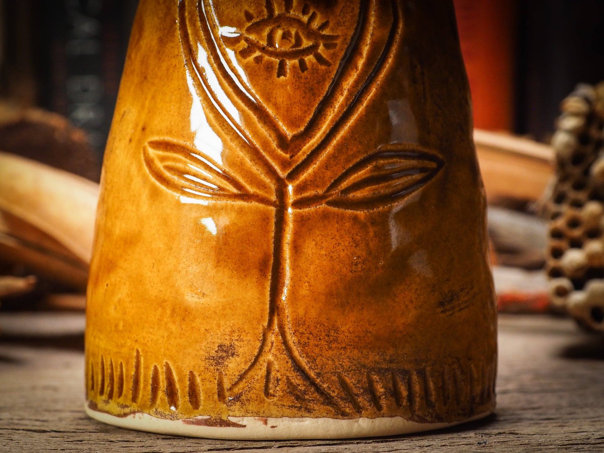 You are looking at an original handmade ceramic vase by Idania Salcido, the artist behind Danita Art. Each one is a unique work of art on itself, inspired and designed by me, Danita Art, it is a homage to the work of Frida Kahlo and her influence on my work. Hand built by me, glazed and fired on my old school kiln.