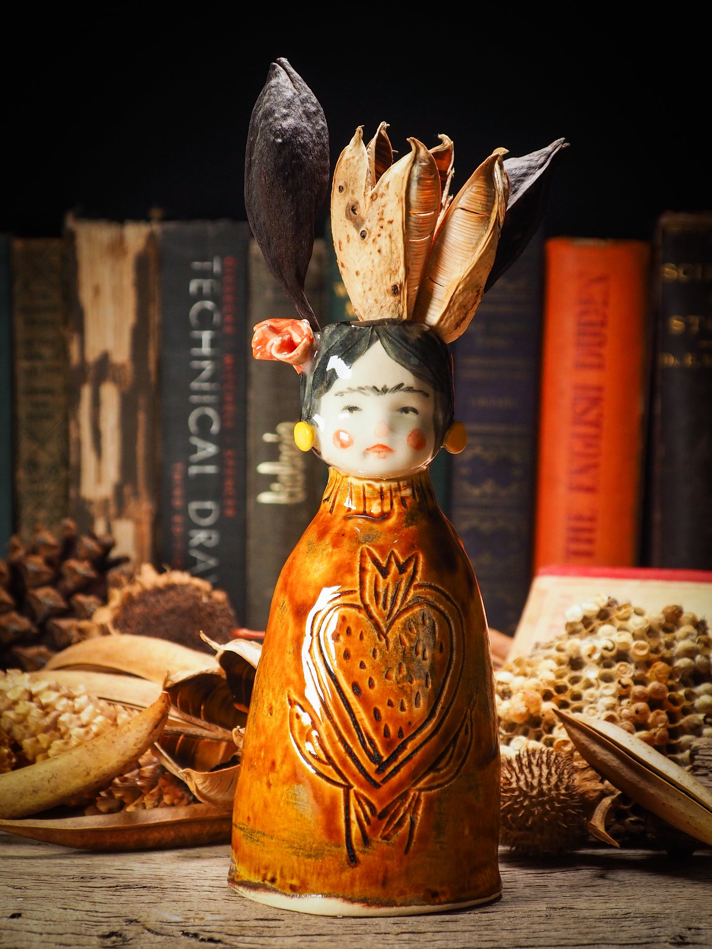 You are looking at an original handmade ceramic vase by Idania Salcido, the artist behind Danita Art. Each one is a unique work of art on itself, inspired and designed by me, Danita Art, it is a homage to the work of Frida Kahlo and her influence on my work. Hand built by me, glazed and fired on my old school kiln.
