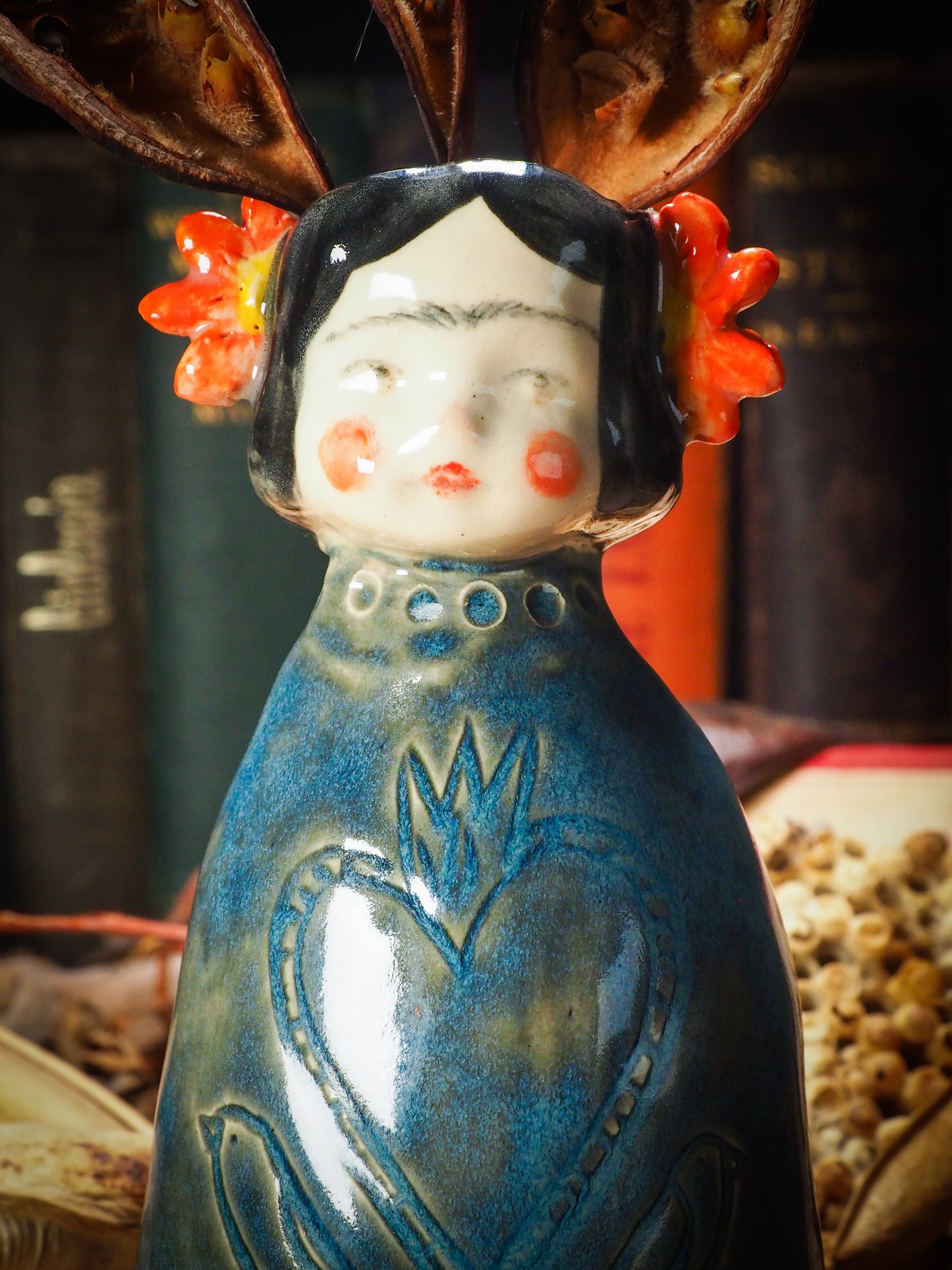 You are looking at an original handmade ceramic vase by Idania Salcido, the artist behind Danita Art. Each one is a unique work of art on itself, inspired and designed by me, Danita Art, it is a homage to the work of Frida Kahlo and her influence on my work. Hand built by me, glazed and fired on my old school kiln.