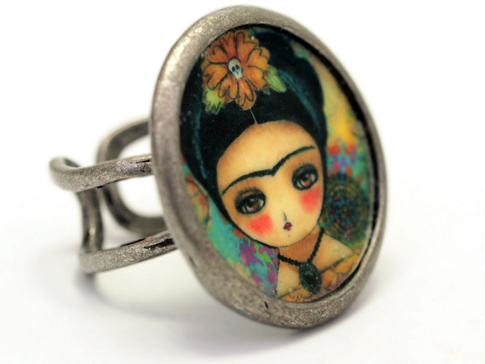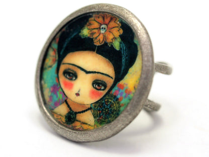 I love this ring collection and I'm sure you will too. Each one of them features a high quality reproduction of one of my paintings, with the same quality than my prints. The image was covered with clear resin to protect it and make it shine.