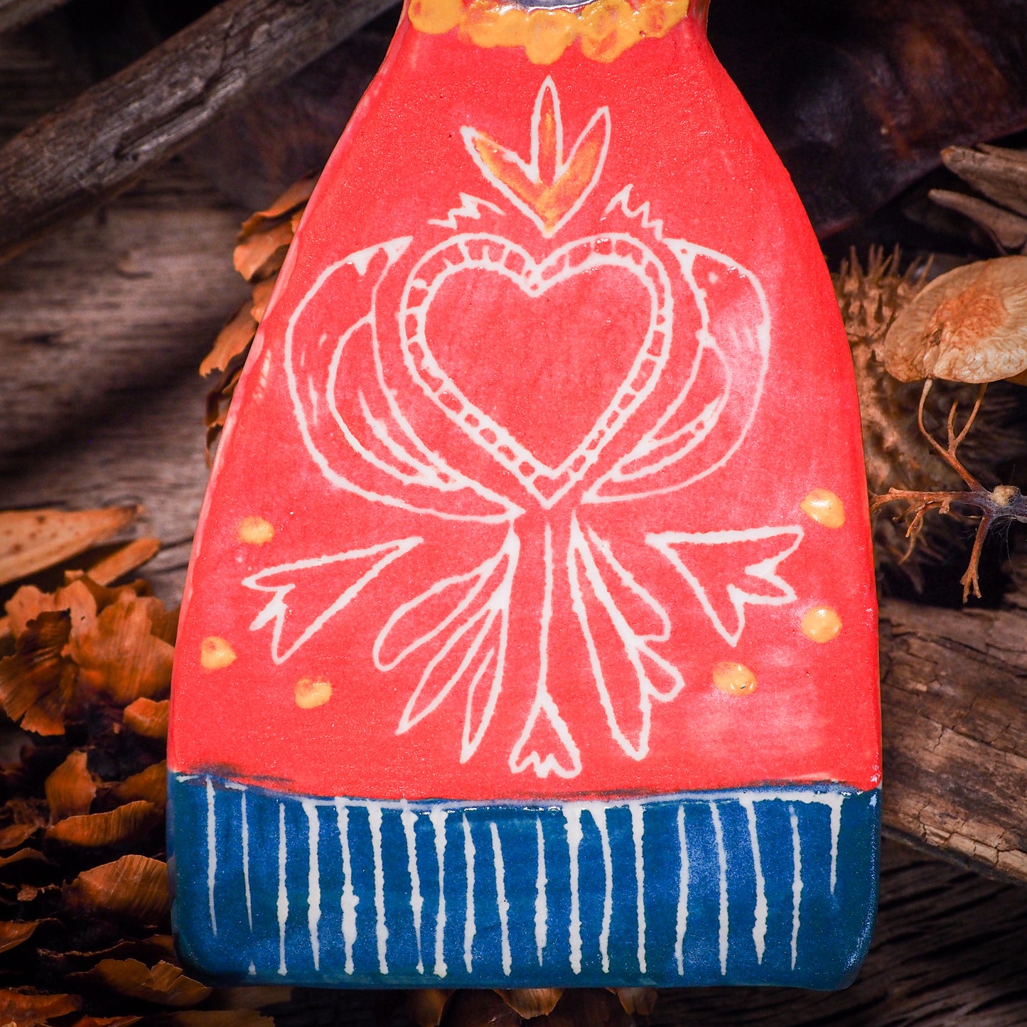 You are looking at original handmade ceramic Christmas and Holiday tree ornament by Idania Salcido, the artist behind Danita Art. Hand made with glazed stoneware at Idania's ceramic studio, the ornament measures approx. 7 inches tall and it is hand painted by the artist.