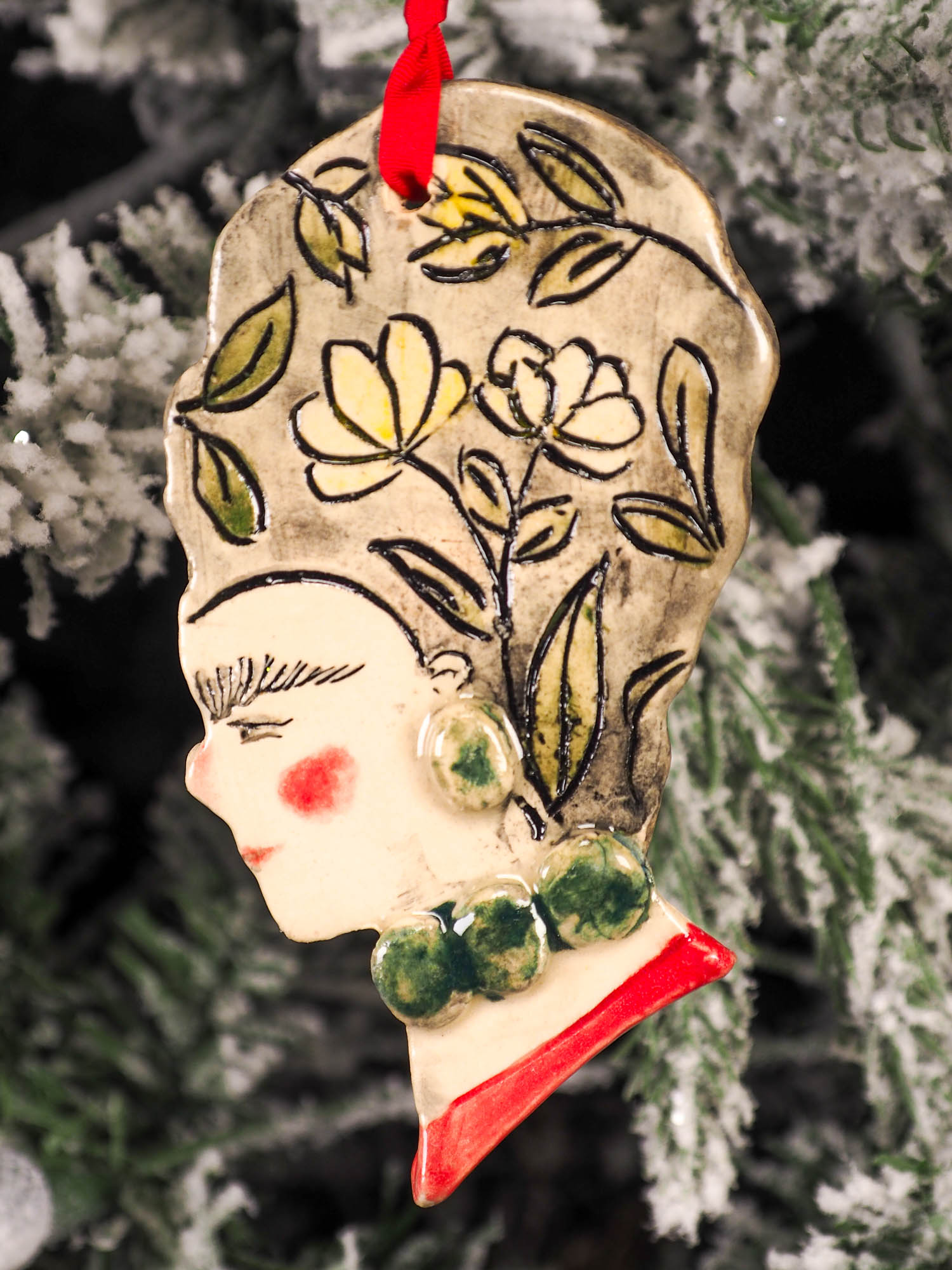 You are looking at original handmade ceramic Christmas and Holiday tree ornament by Idania Salcido, the artist behind Danita Art. Hand made with glazed stoneware at Idania's ceramic studio, the ornament measures approx. 4 inches tall and it is hand painted by the artist.