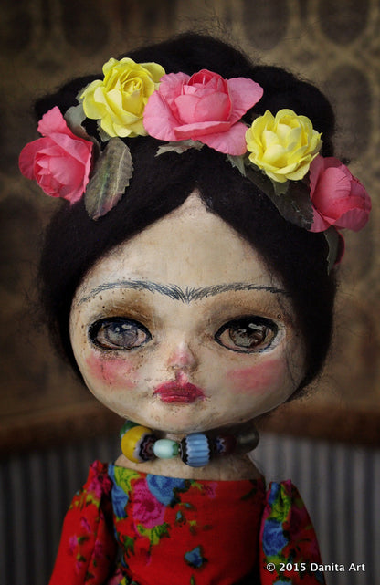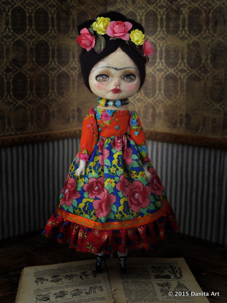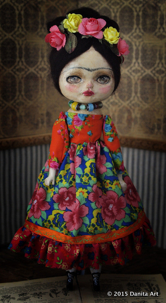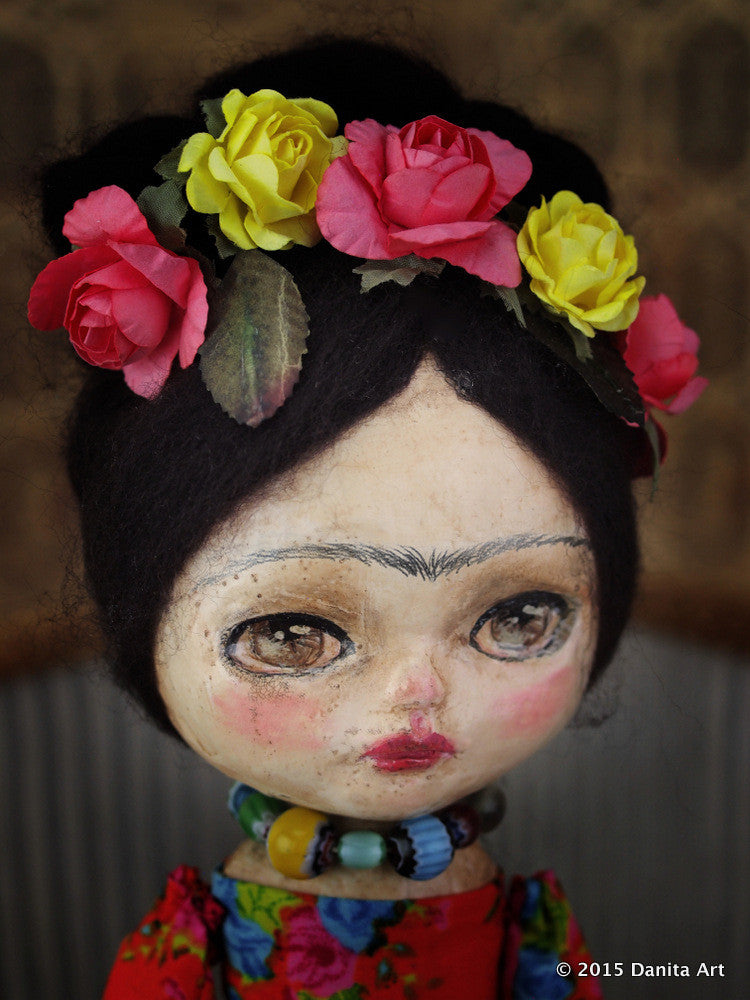 This is my first doll with an sculpted face. I am experimenting a lot with new materials and I decided to give sculpting a face a go, and what better subject than my muse and inspiration, Frida Kahlo?