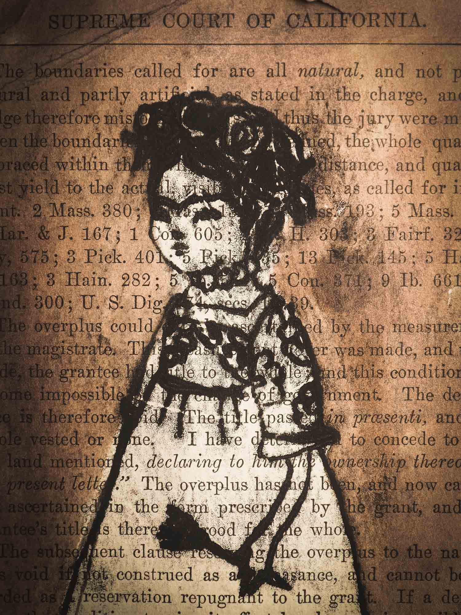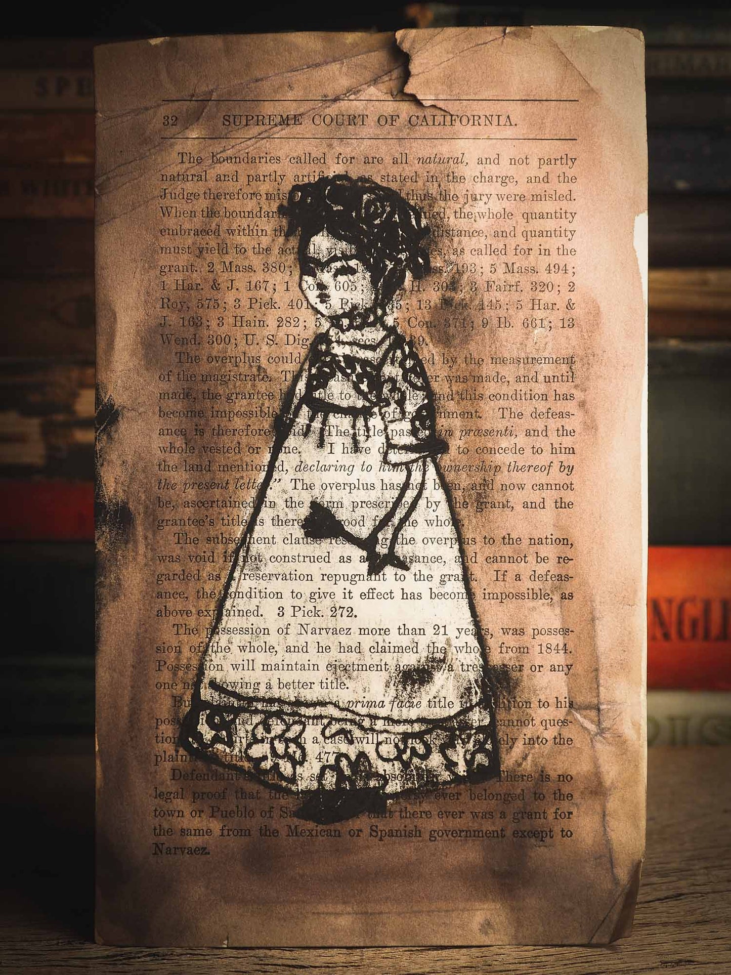I painted Frida using a page from a vintage book I found from my collection, I love the mixing of letters and drawing, as it gives it a very special vintage feel.