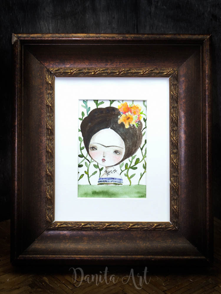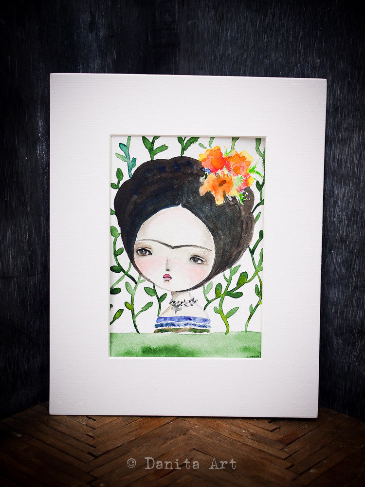 Frida, my inspiration. I am always trying to paint her in different situations and settings in Danita Land, I love her strong spirit and her unstoppable personality, and I really believe that when you own one of my Frida portraits, you take part of that spirit with you.