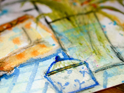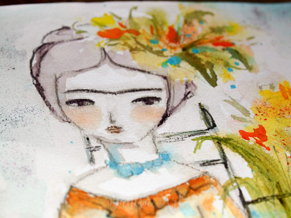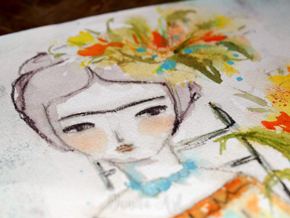 All I did was follow the will of the watercolor, and I'm so happy I did, because the painting that came from it really makes me smile with it's simple color palette and bright looks.