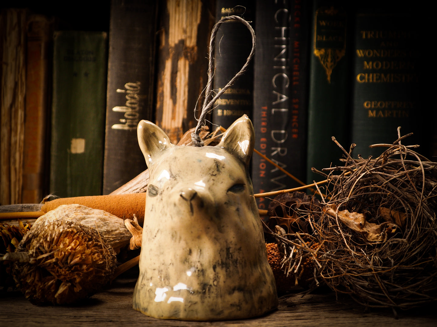 Chimes and bells attract me. I love to hear them ringing when the wind is lightly blowing on the tree in front of my house, I find the sound delightfully soothing! So I decided to create a few of them myself and experiment with animal shapes in ceramic.