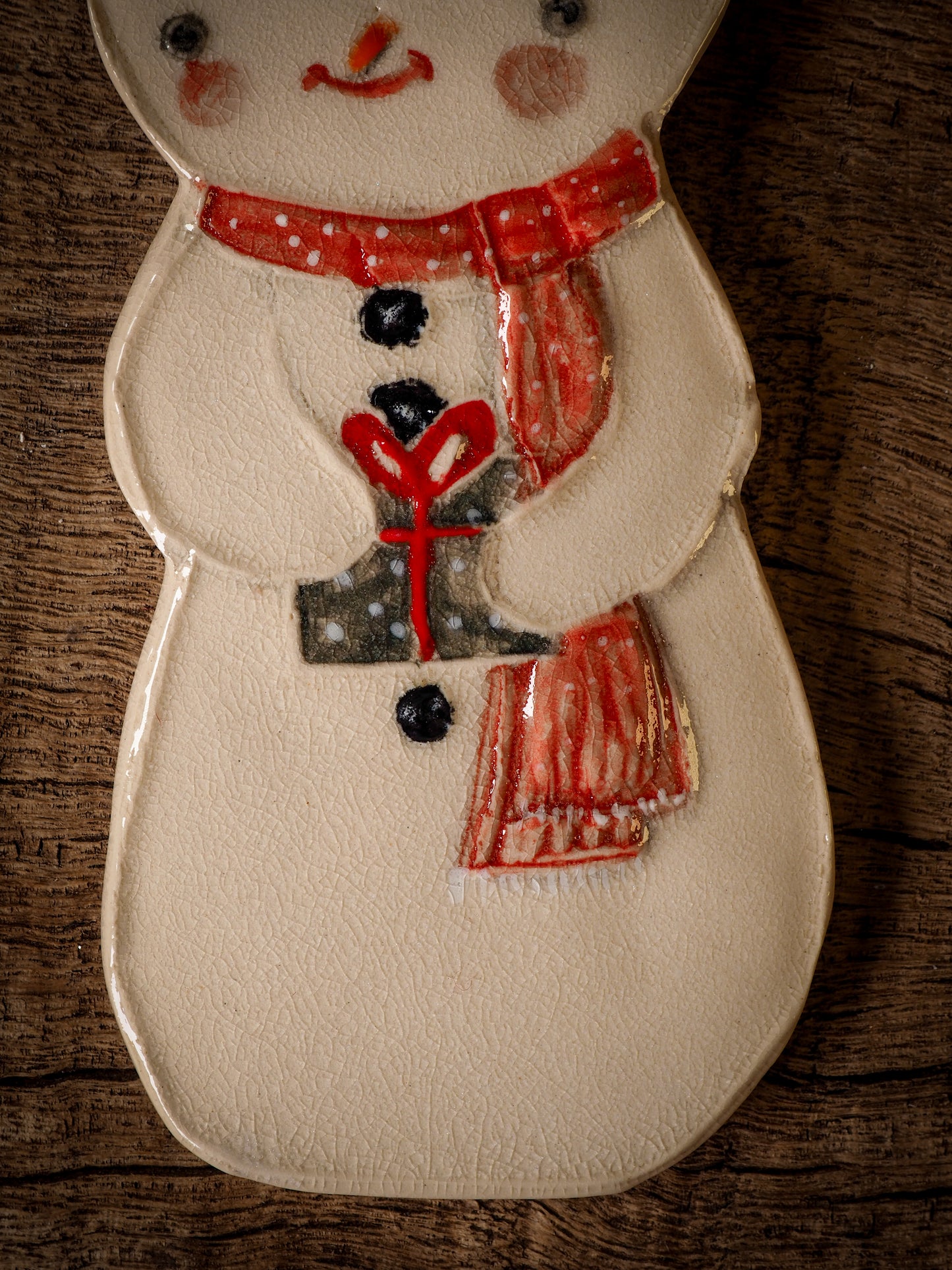 This is an original handmade fire glazed ceramic Christmas tree ornament by Danita Art.