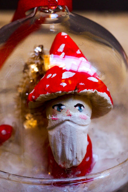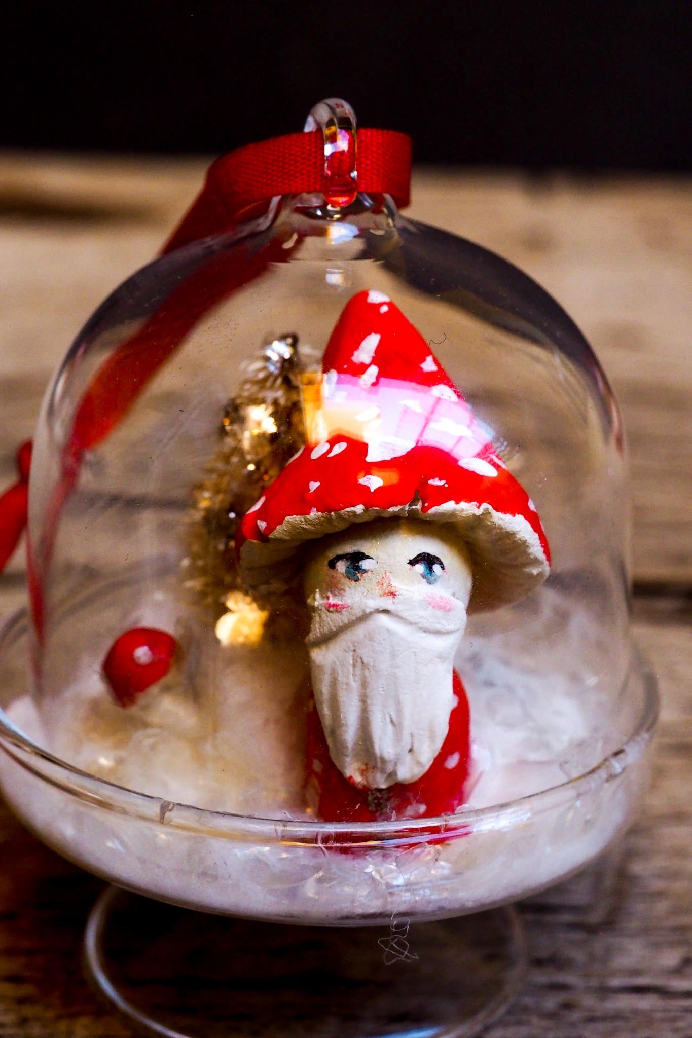 Each doll is hand painted, with a beautiful face and very detailed eyes and other facial details. Their transparent dome catches every shimmering reflection if you put them near Christmas lights. Imagine them lighted by a fireplace or a Christmas tree!