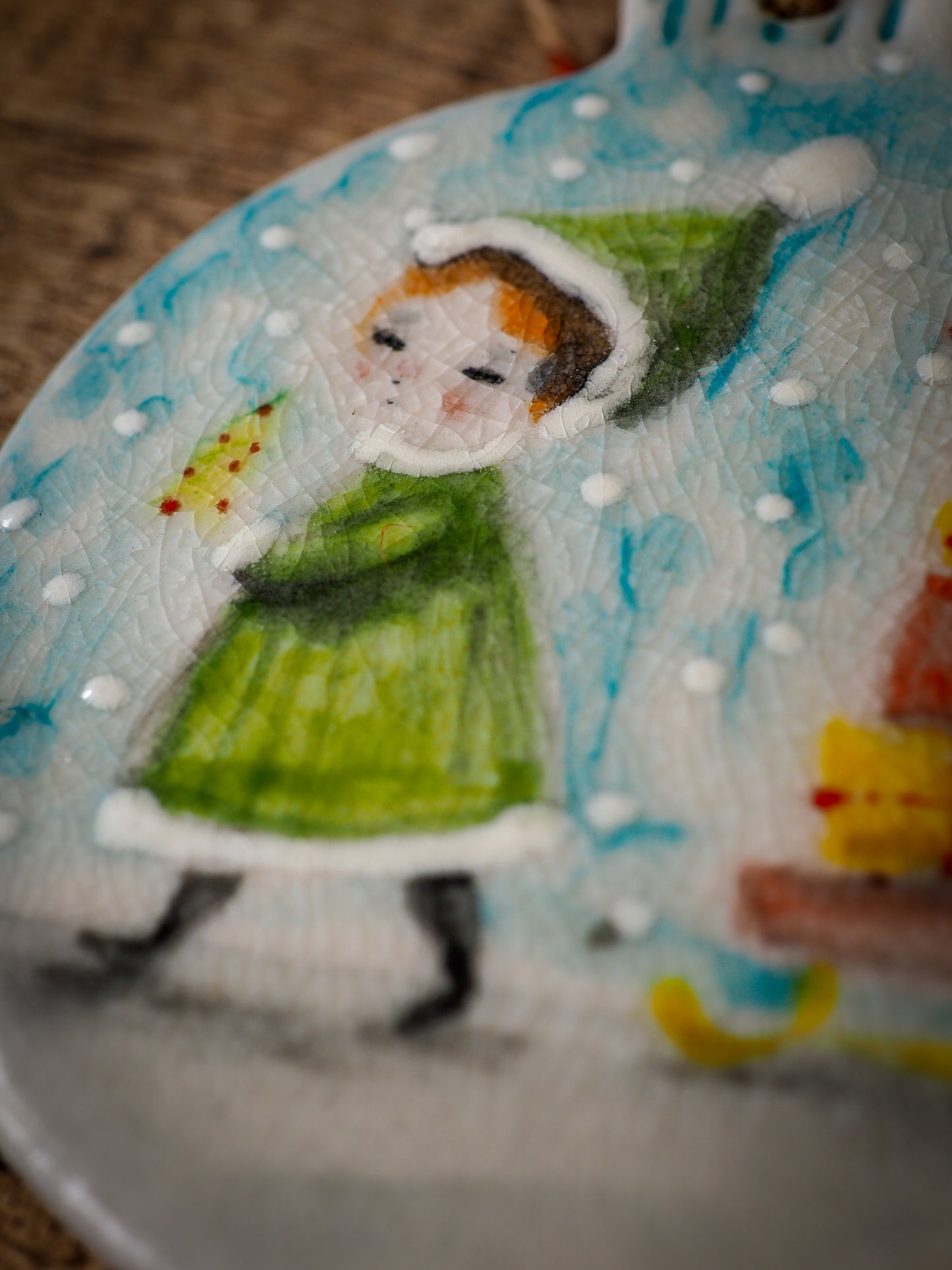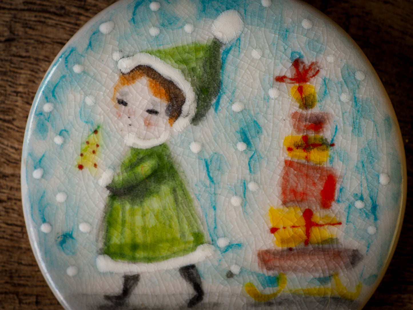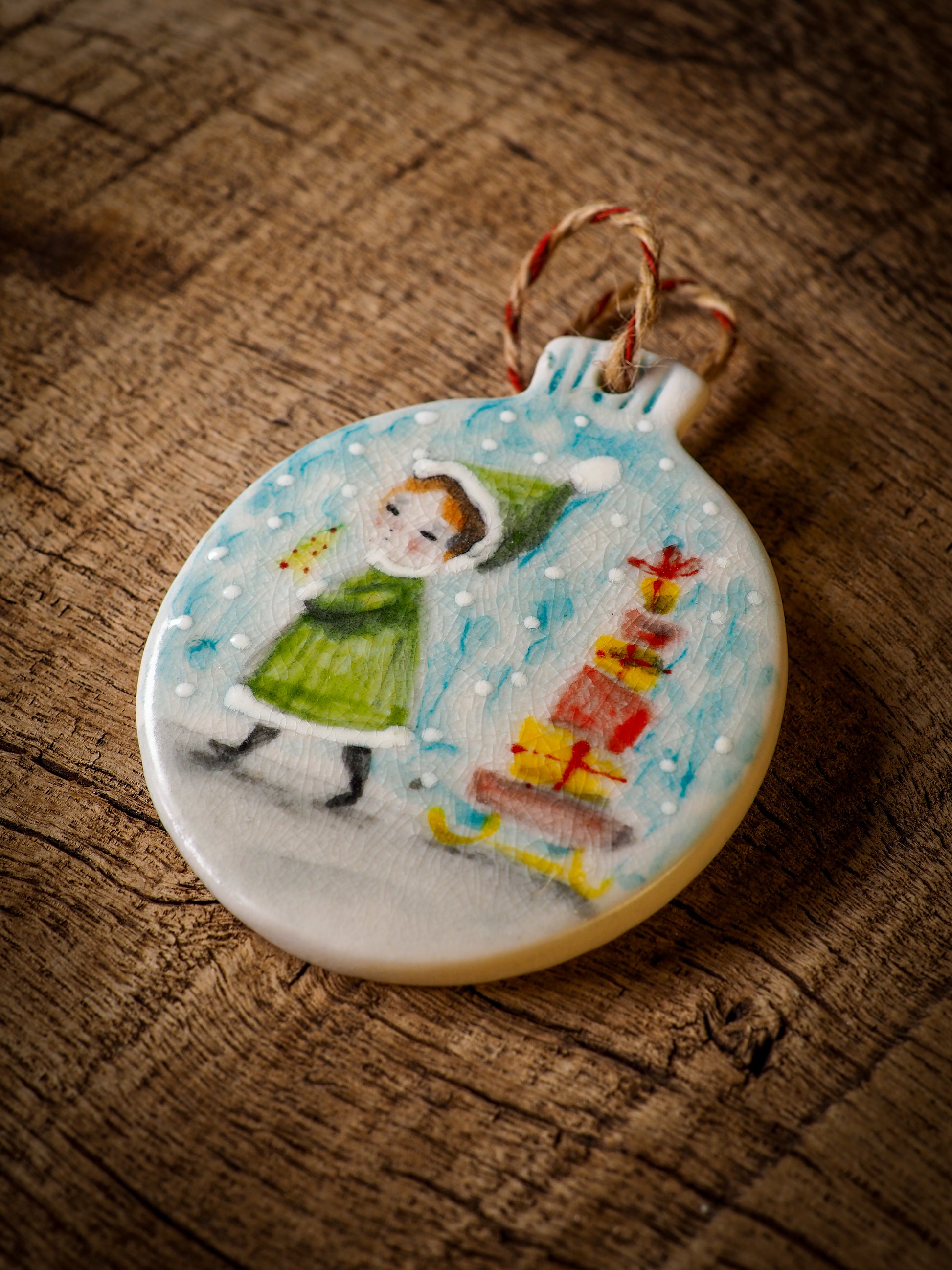 Totally hand made on my studio, each of my ornaments is hand painted, fired twice on a kiln at more than 2000 Degrees, then finished with a beautiful twine hanger.