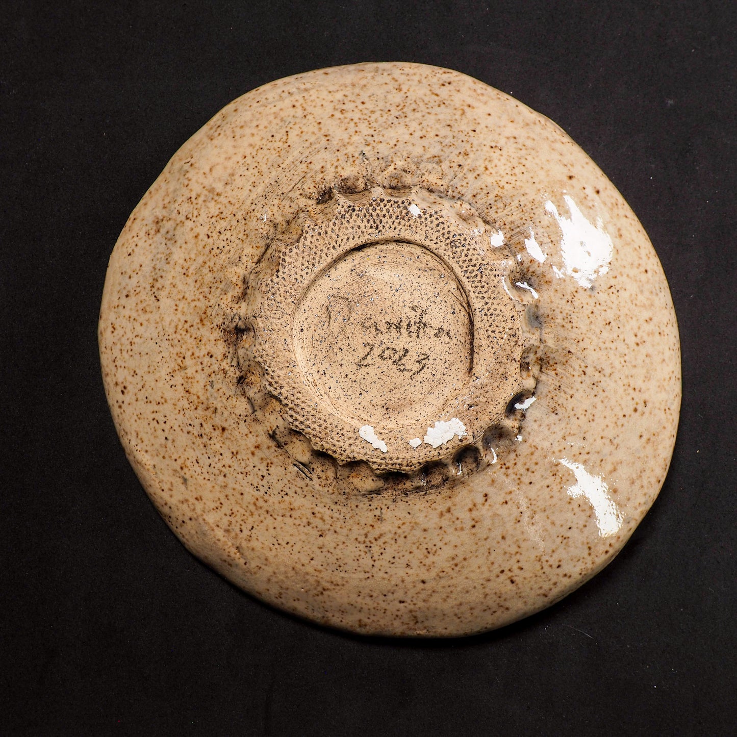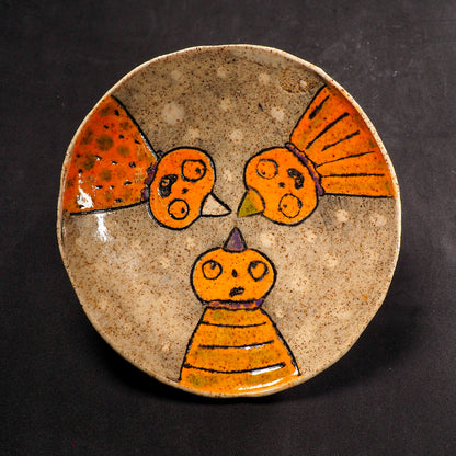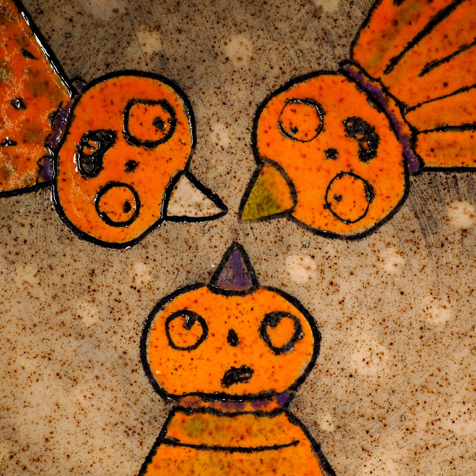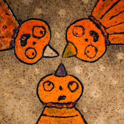 An original handmade Halloween ornament by Idania Salcido, Danita Art. each ceramics piece is hand carved with pumpkins, witches, cats, jack-o-lanterns and moons.
