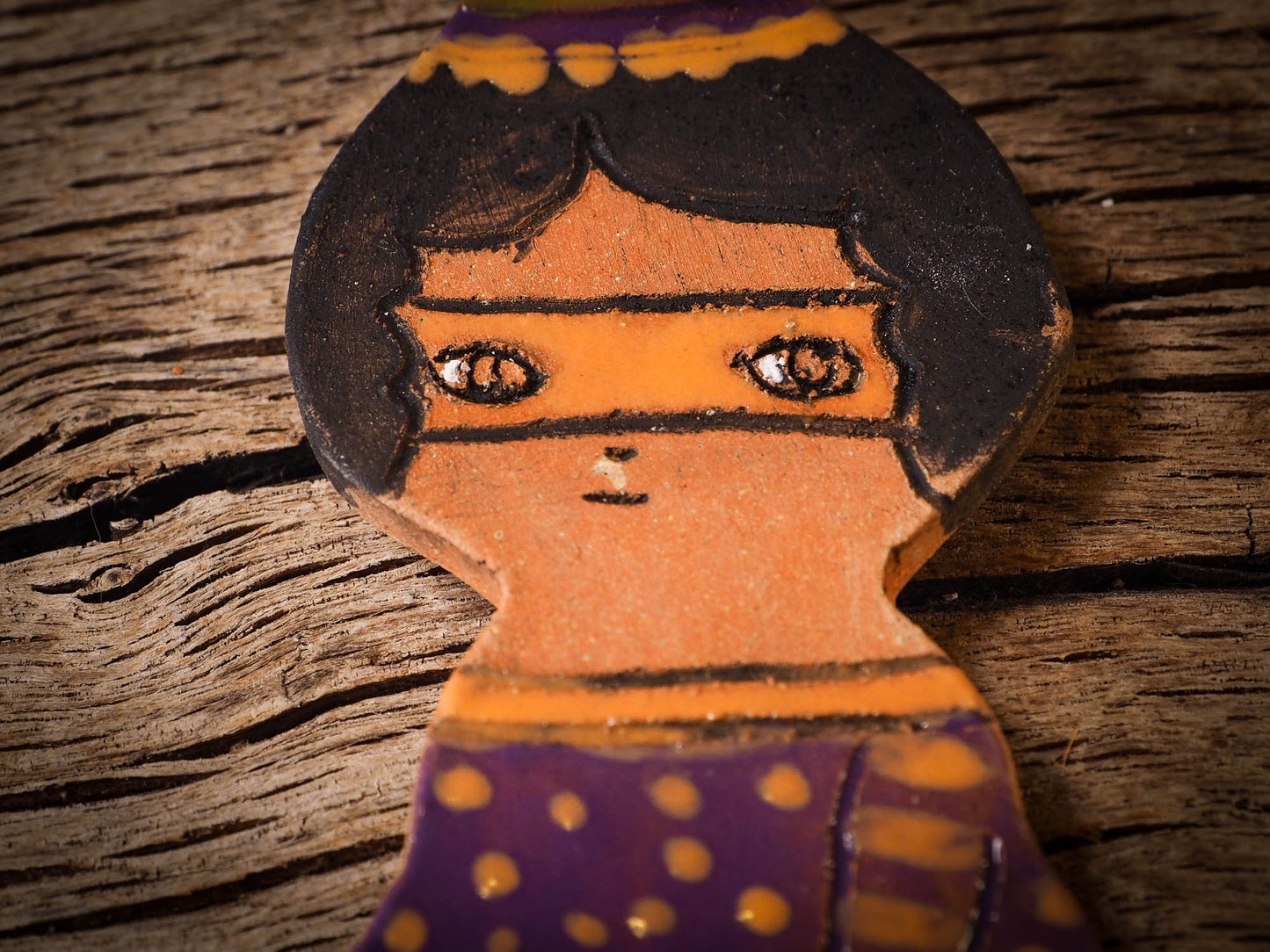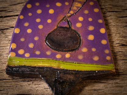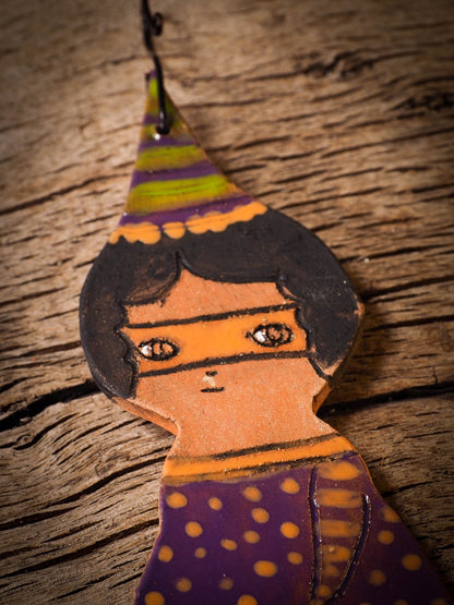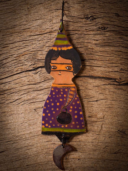 An original handmade Halloween ornament by Idania Salcido, Danita Art. Each ornament is hand carved with pumpkins, witches, cats, jack-o-lanterns and moons.