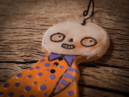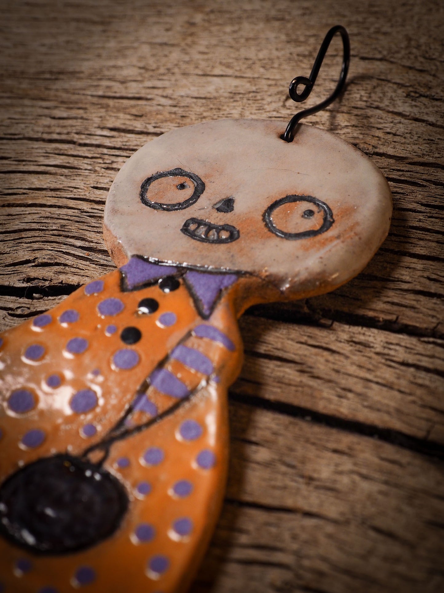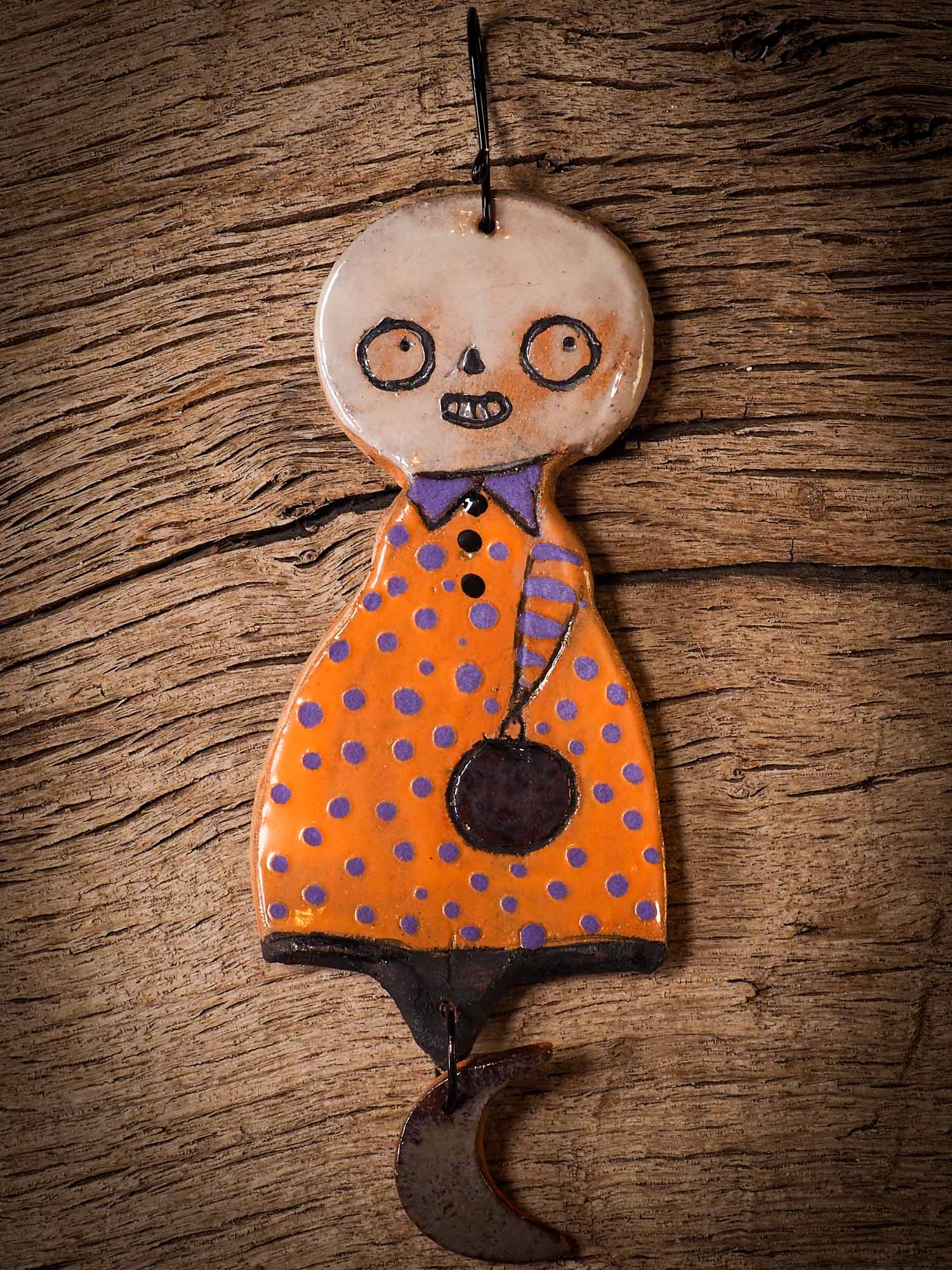 An original handmade Halloween ornament by Idania Salcido, Danita Art. Each ornament is hand carved with pumpkins, witches, cats, jack-o-lanterns and moons.