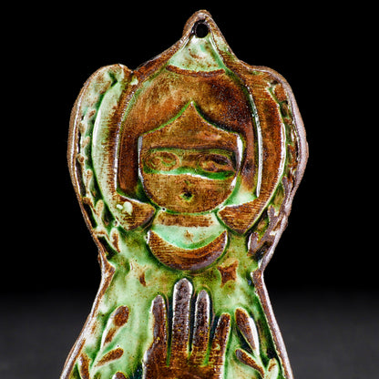 An original handmade Halloween ornament by Idania Salcido, Danita Art. Each ornament is hand carved with pumpkins, witches, cats, jack-o-lanterns and moons.