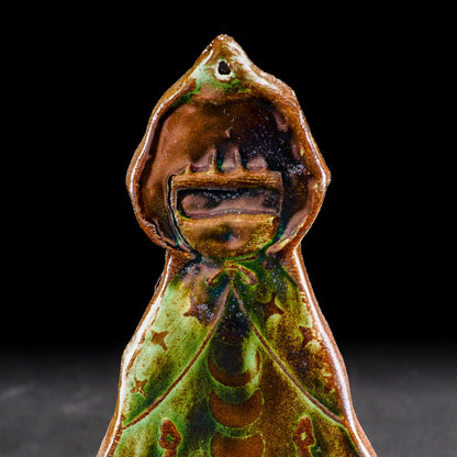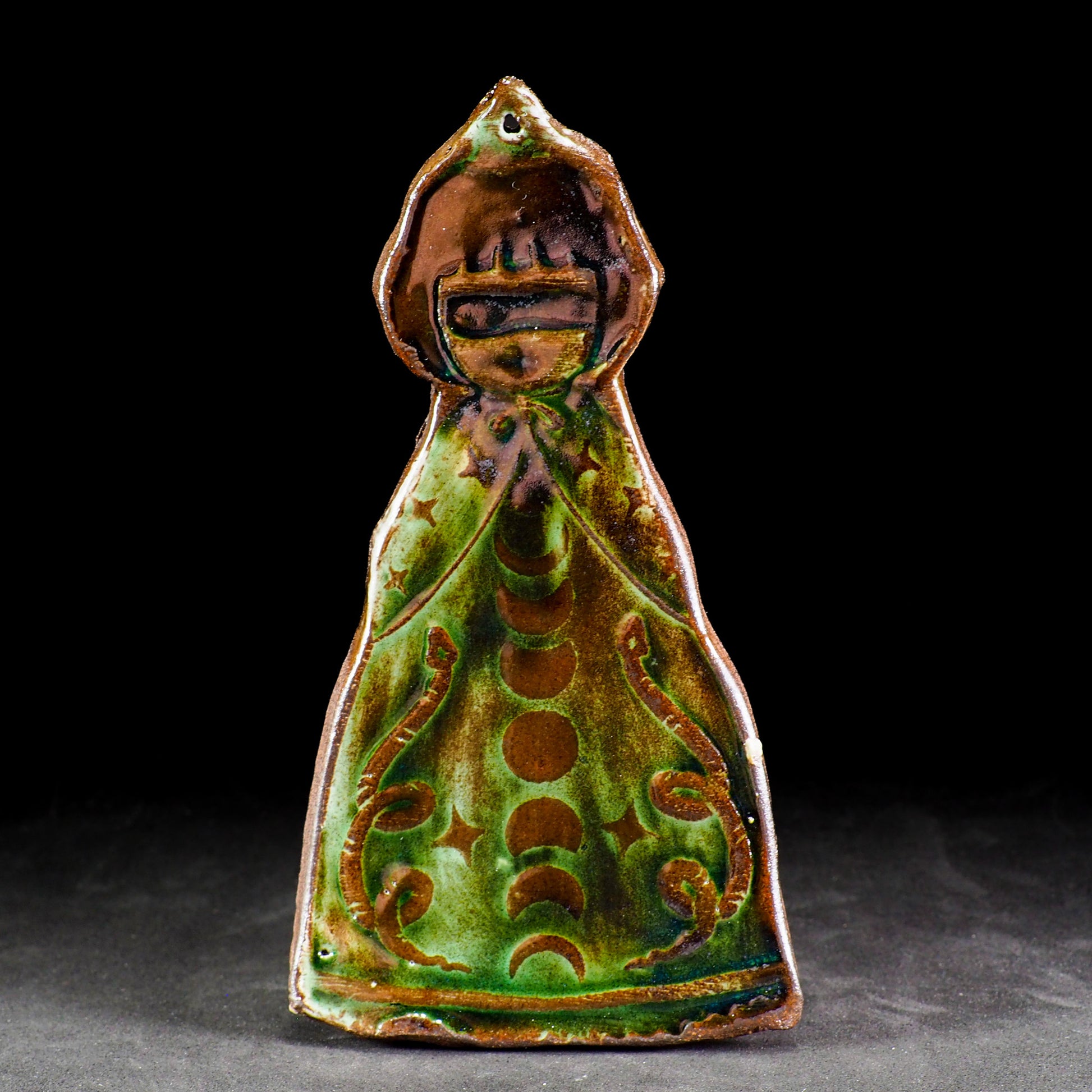 An original handmade Halloween ornament by Idania Salcido, Danita Art. Each ornament is hand carved with pumpkins, witches, cats, jack-o-lanterns and moons.