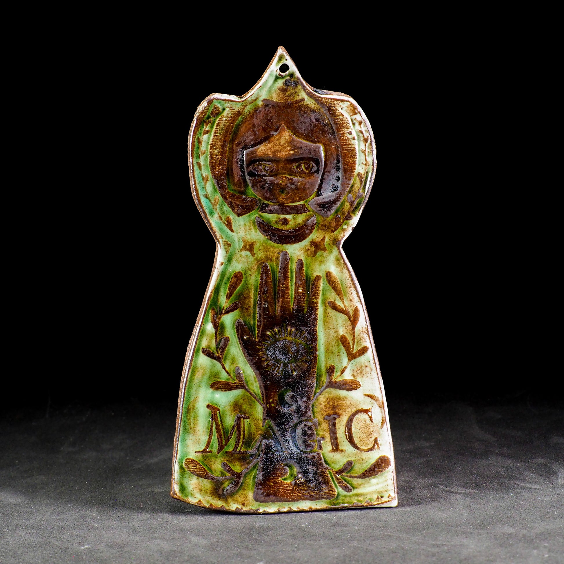An original handmade Halloween ornament by Idania Salcido, Danita Art. Each ornament is hand carved with pumpkins, witches, cats, jack-o-lanterns and moons.