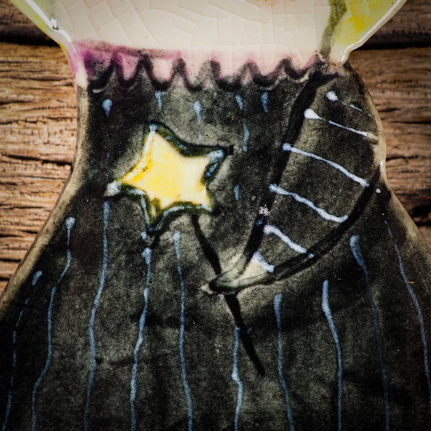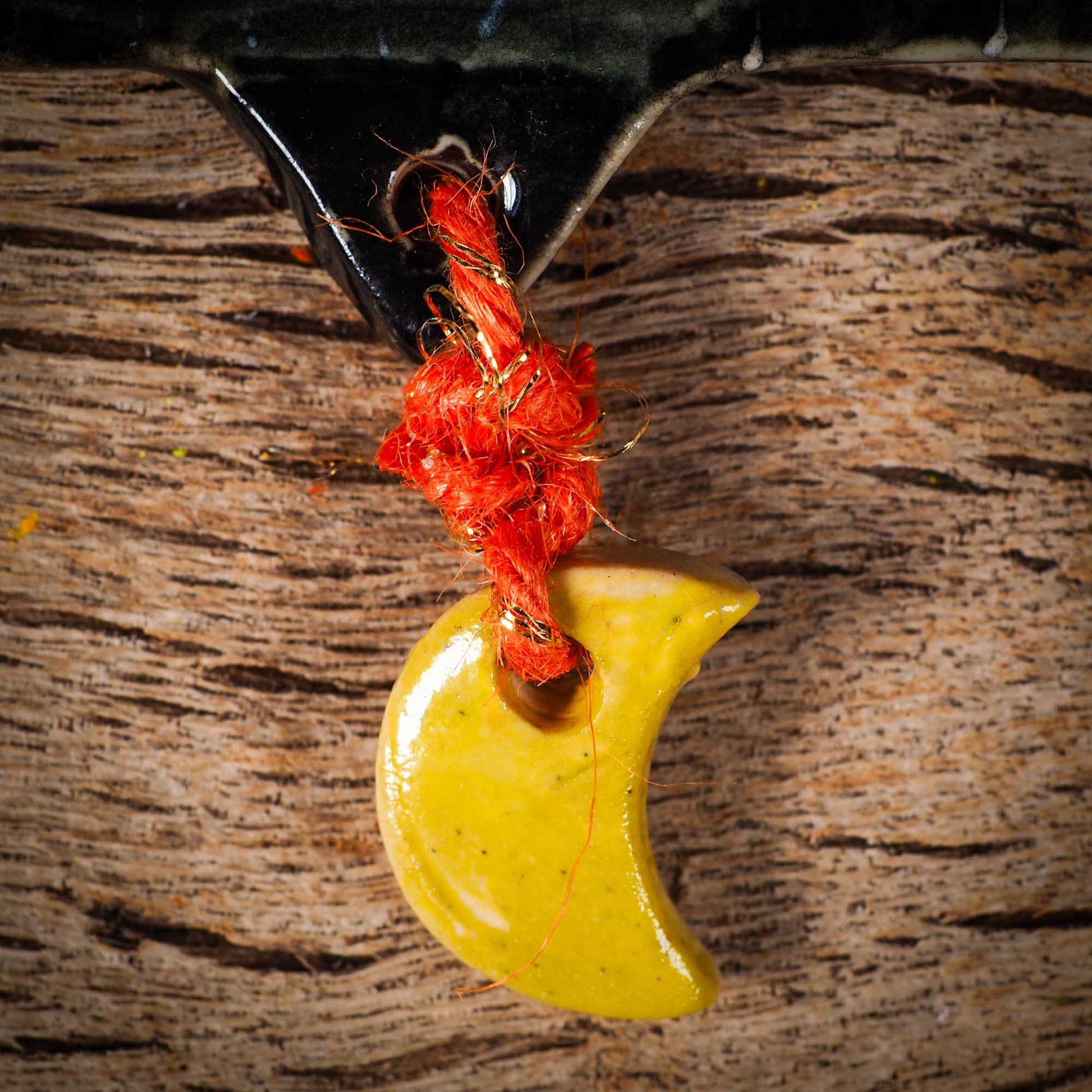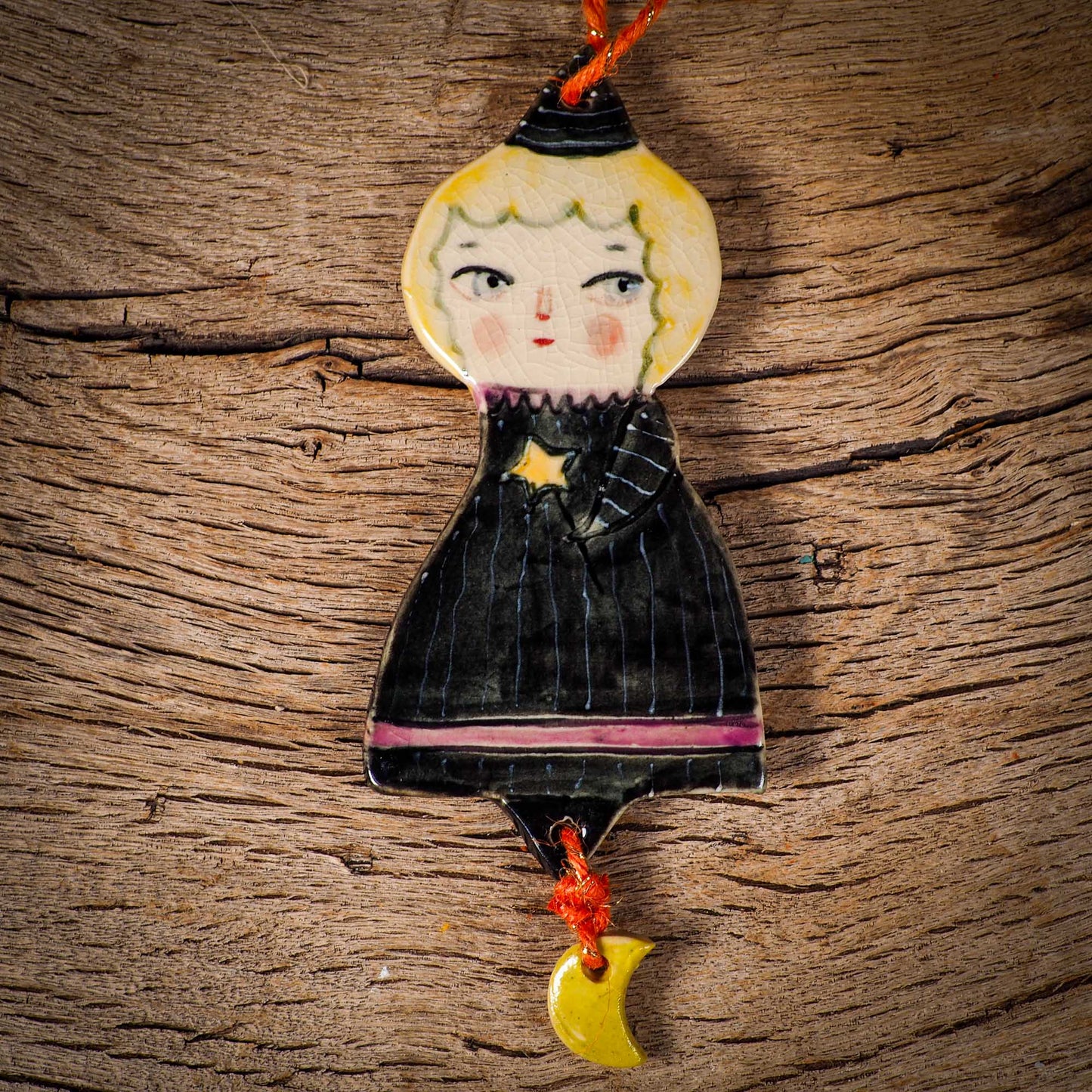An original handmade Halloween ornament by Idania Salcido, Danita Art. Each ornament is hand carved with pumpkins, witches, cats, jack-o-lanterns and moons.