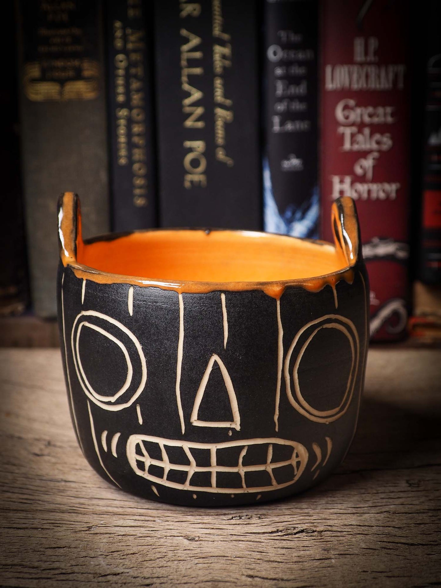 This cute pail bucket is perfect to keep a small amount of candy ready to eat, no matter where you are. An original Halloween ceramic bowl by Idania Salcido, the artist behind Danita Art.