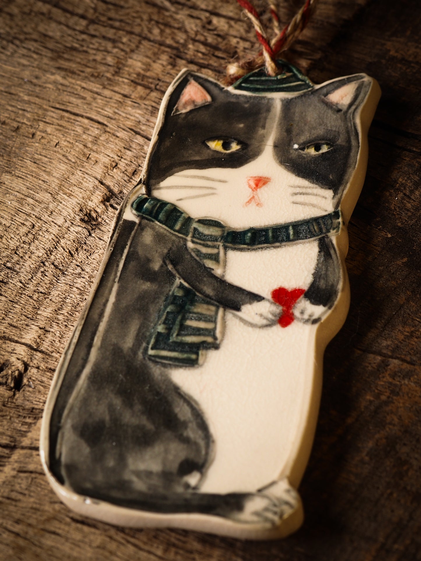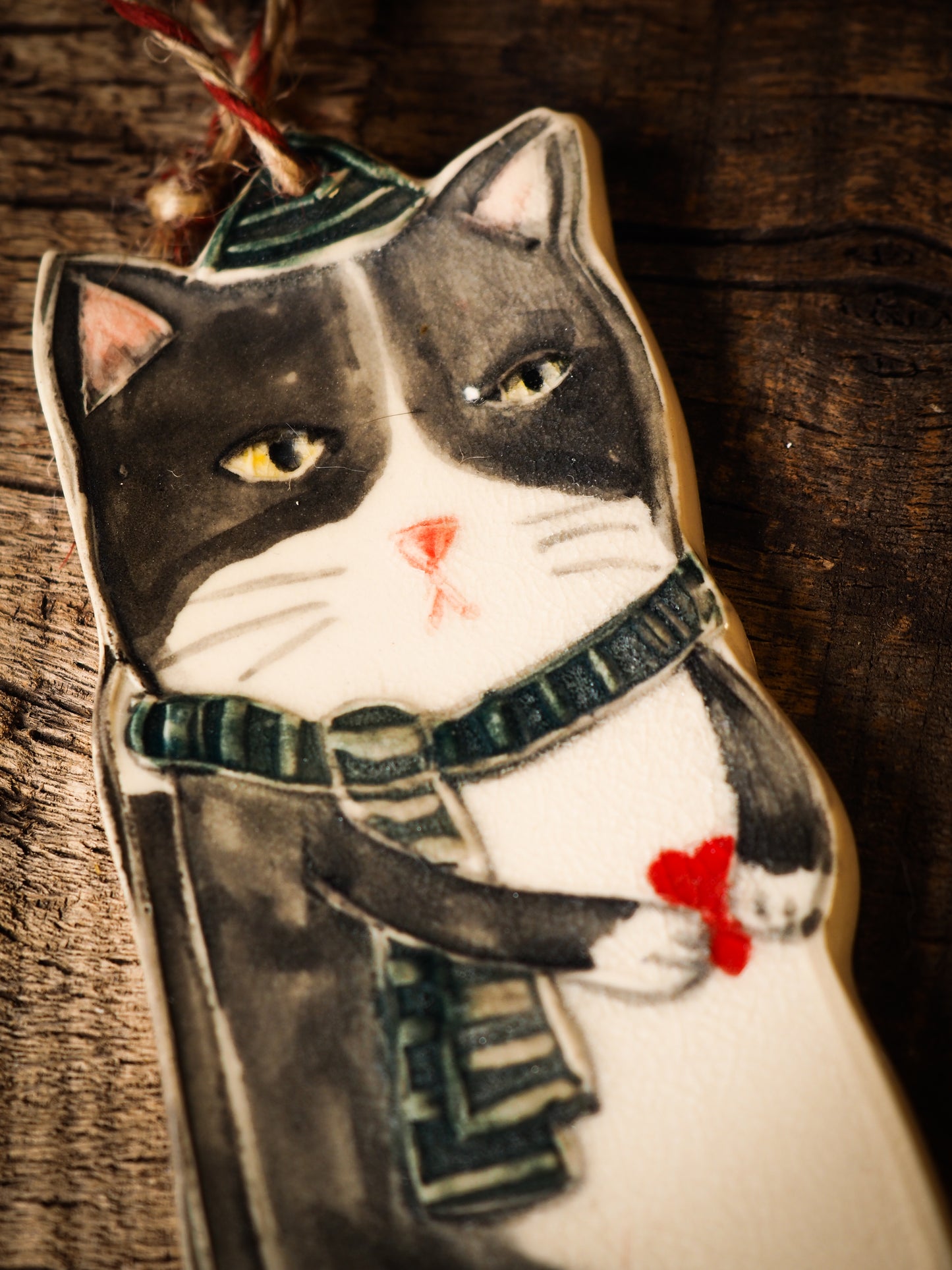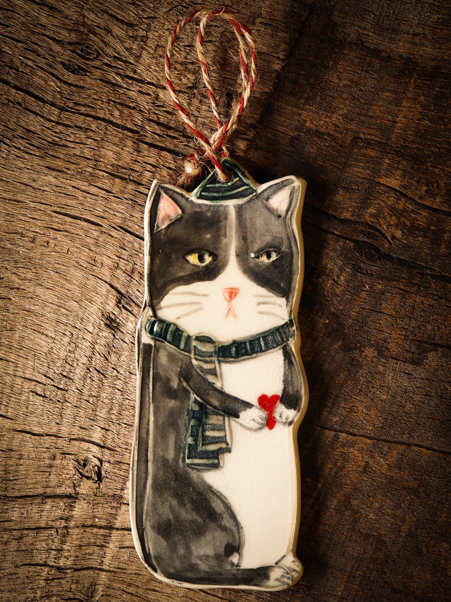 Totally hand made on my studio, each of my ornaments is hand painted, fired twice on a kiln at more than 2000 Degrees, then finished with a beautiful twine hanger.