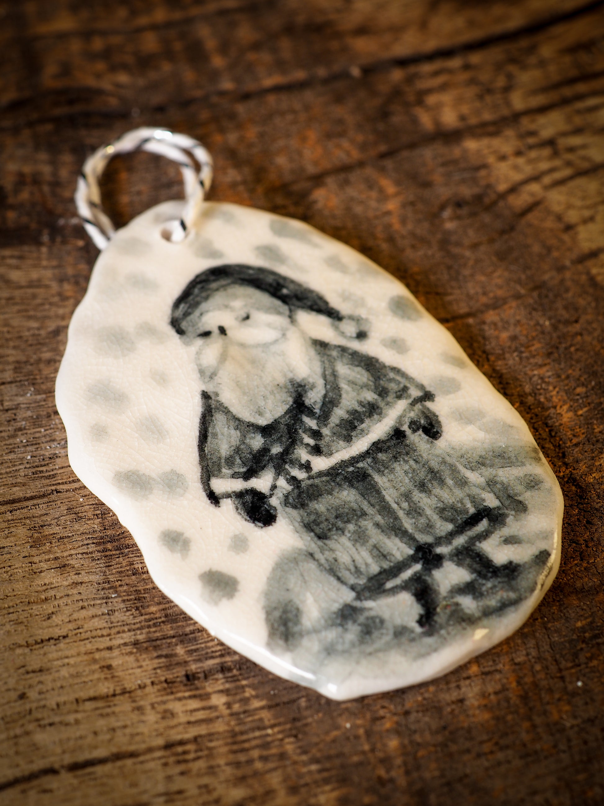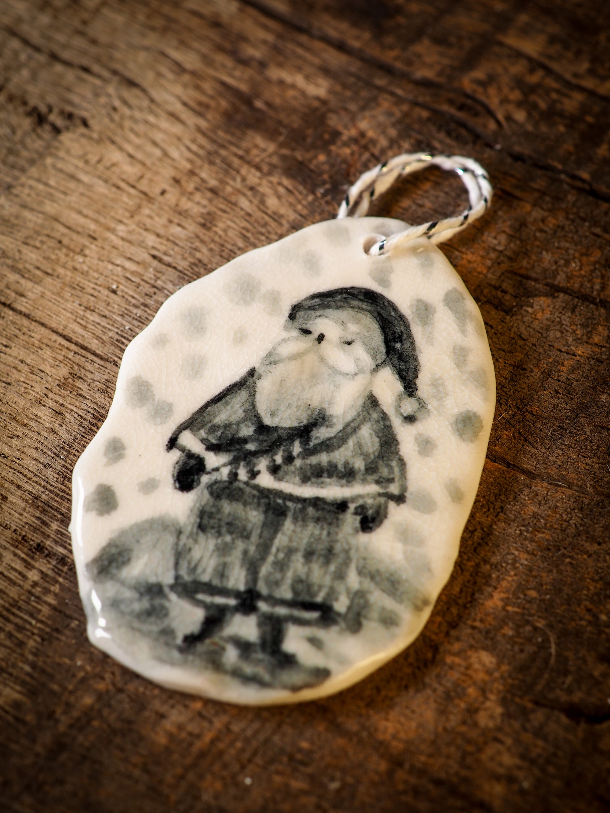 Totally hand made on my studio, each of my ornaments is hand painted, fired twice on a kiln at more than 2000 Degrees, then finished with a beautiful twine hanger.