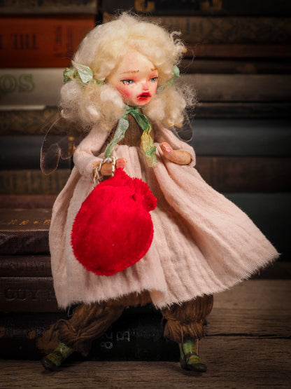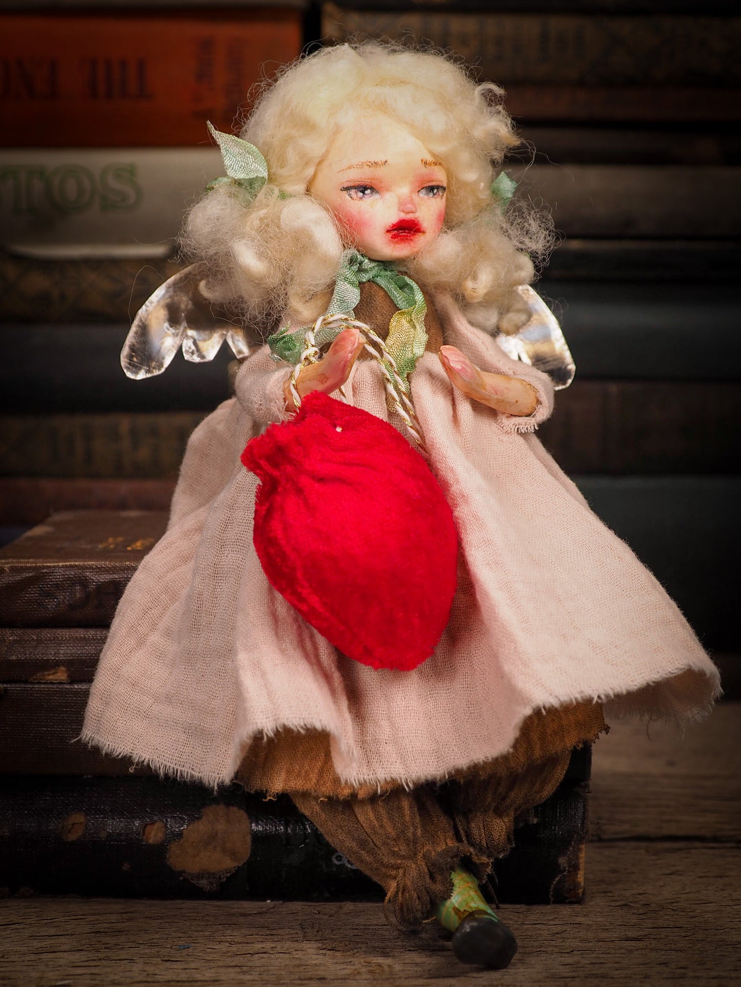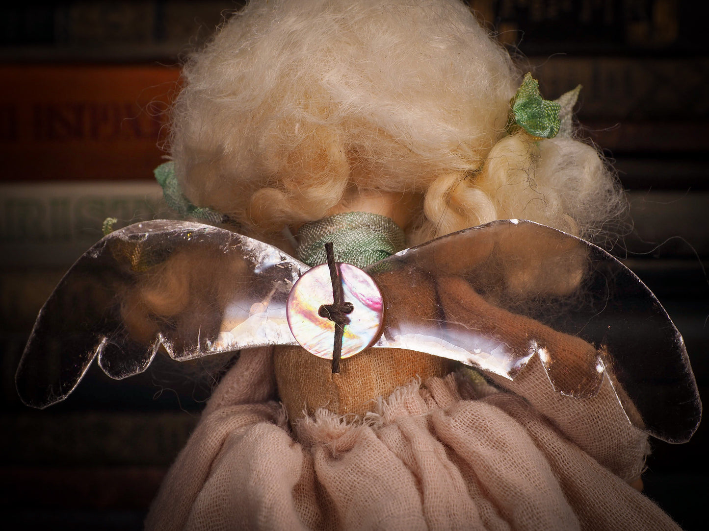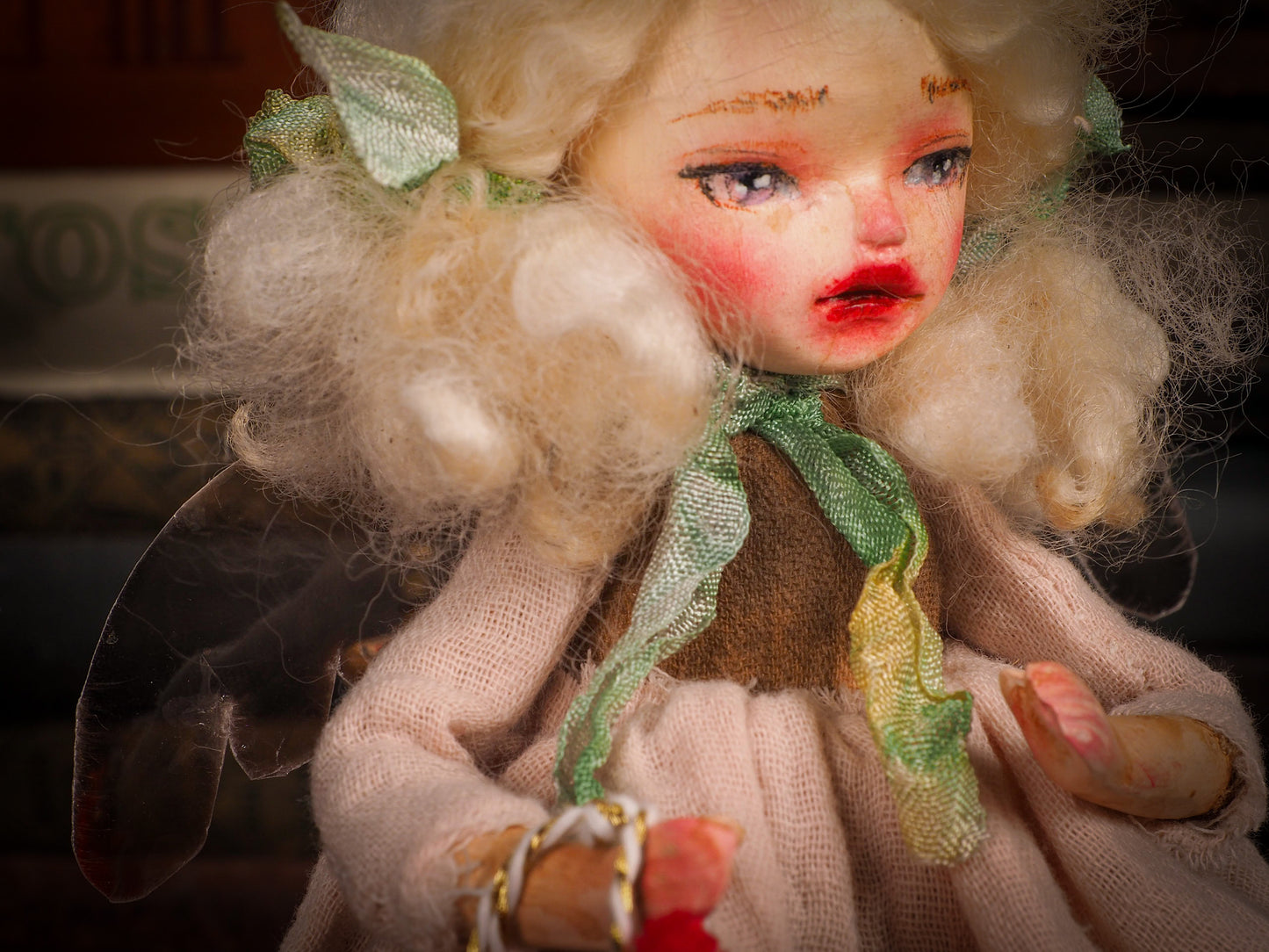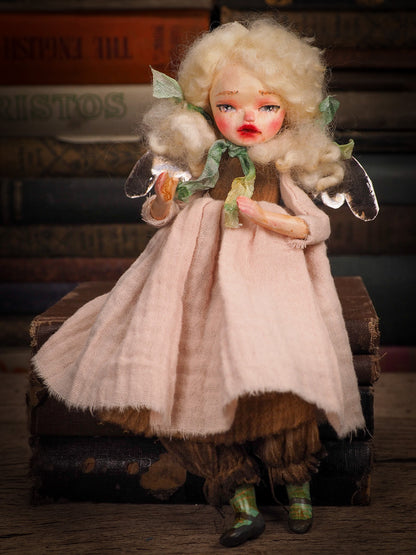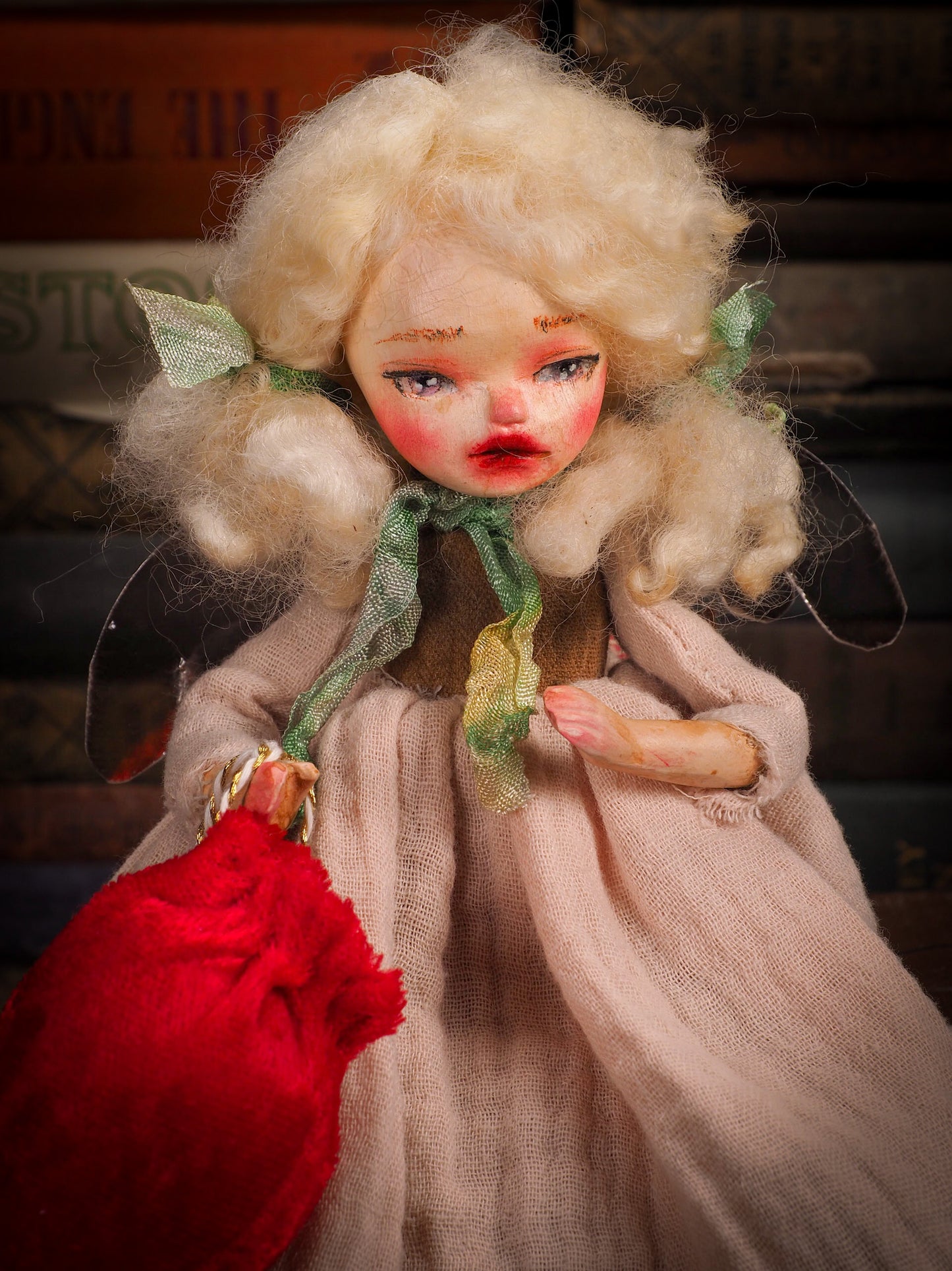 Each doll by Idania Salcido, the artist behind Danita Art is made with hand dyed fabric that I prepare myself, adorned with a lush set of mica wings and a silky ribbon.