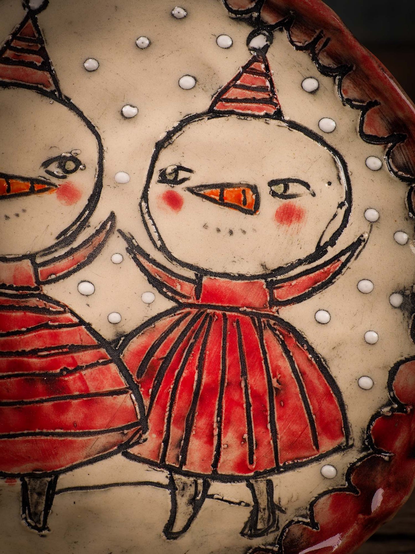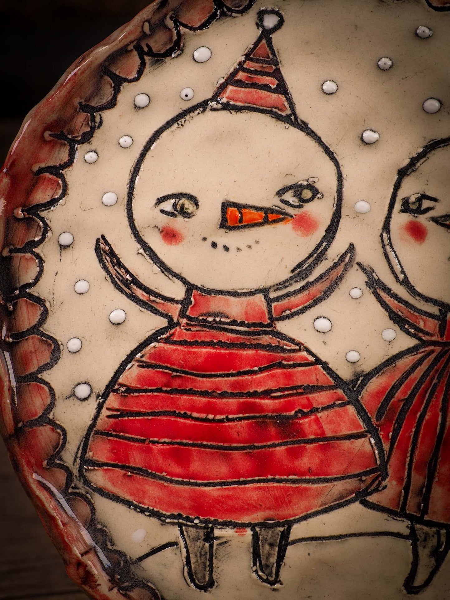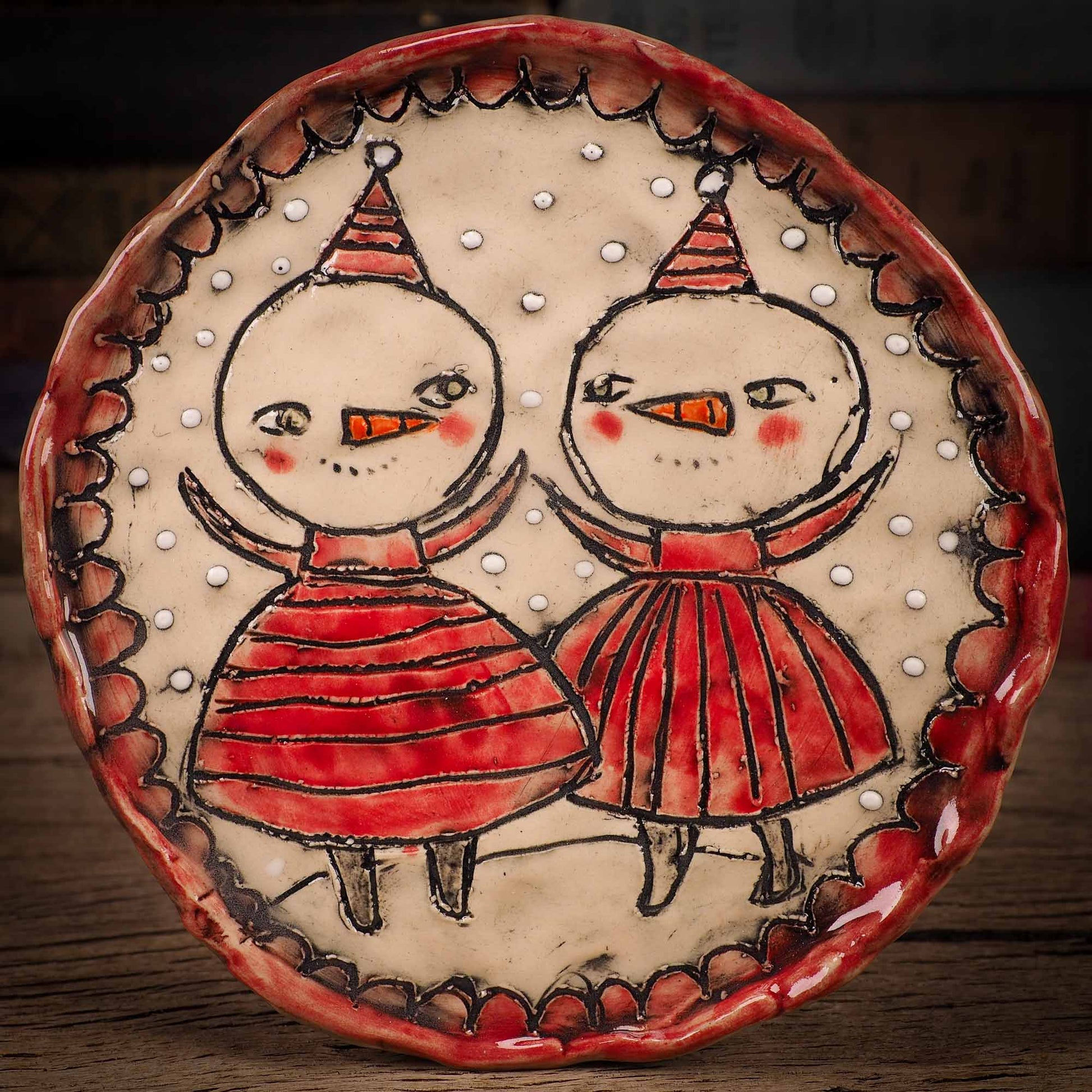 You are looking at original handmade ceramic Christmas Holiday cake plate by Idania Salcido, the artist behind Danita Art. Hand made with glazed stoneware at Idania's ceramic studio, the ornament measures approx. 5 inches diameter, painted and illustrated by the artist.