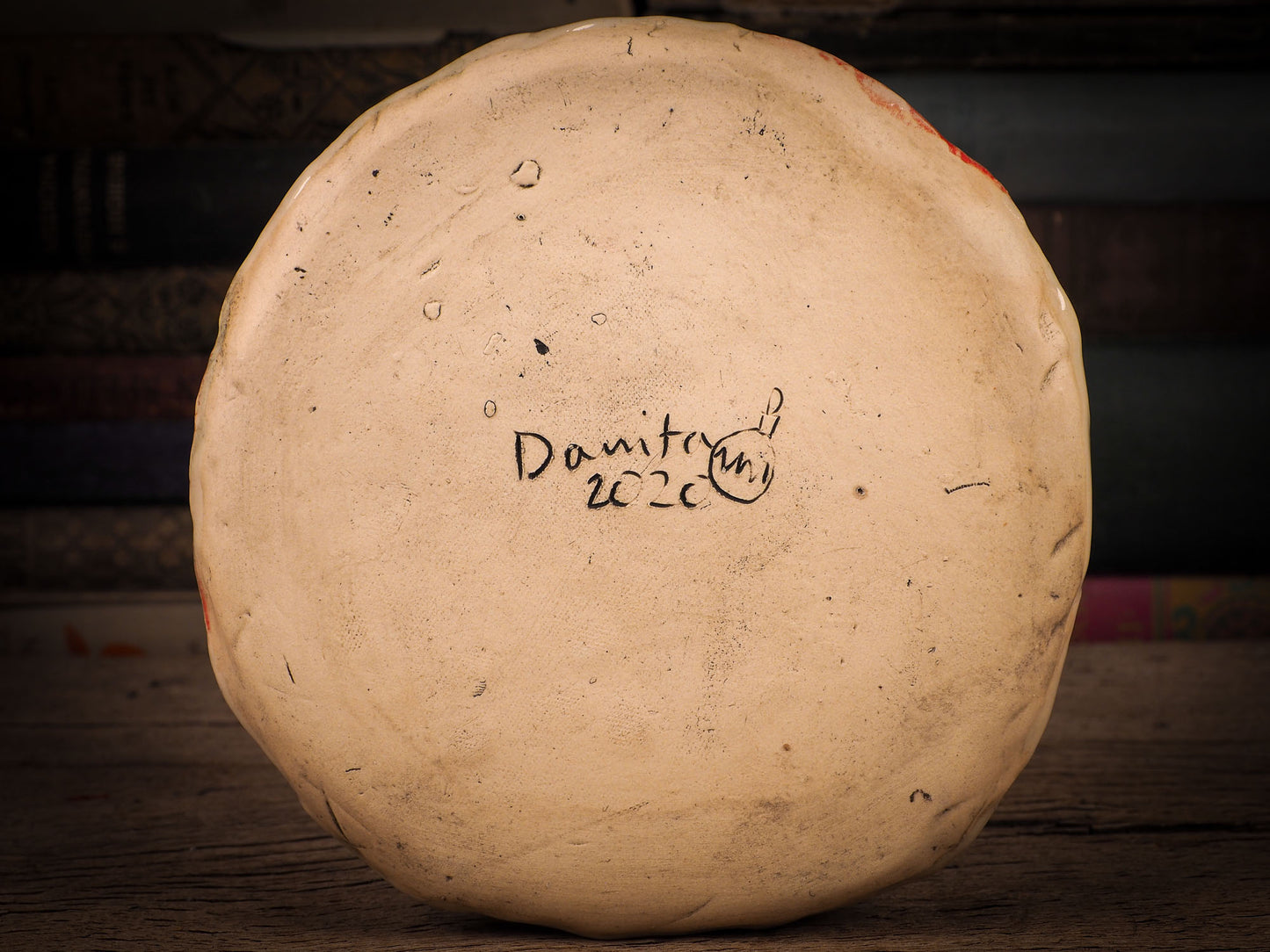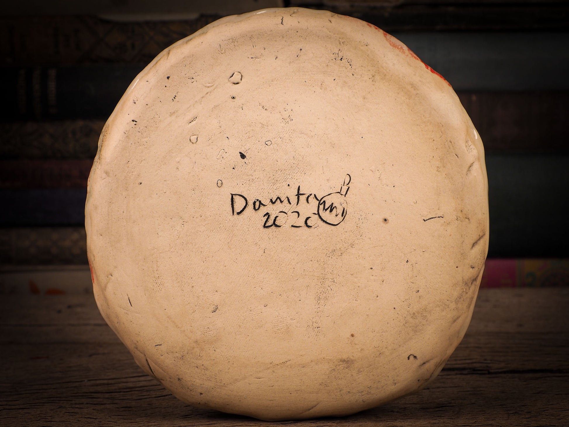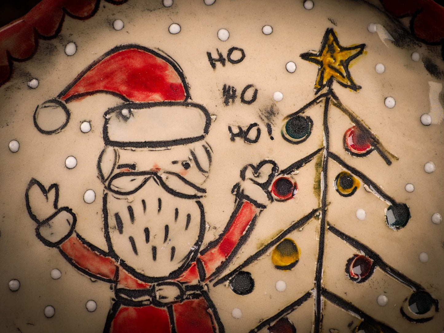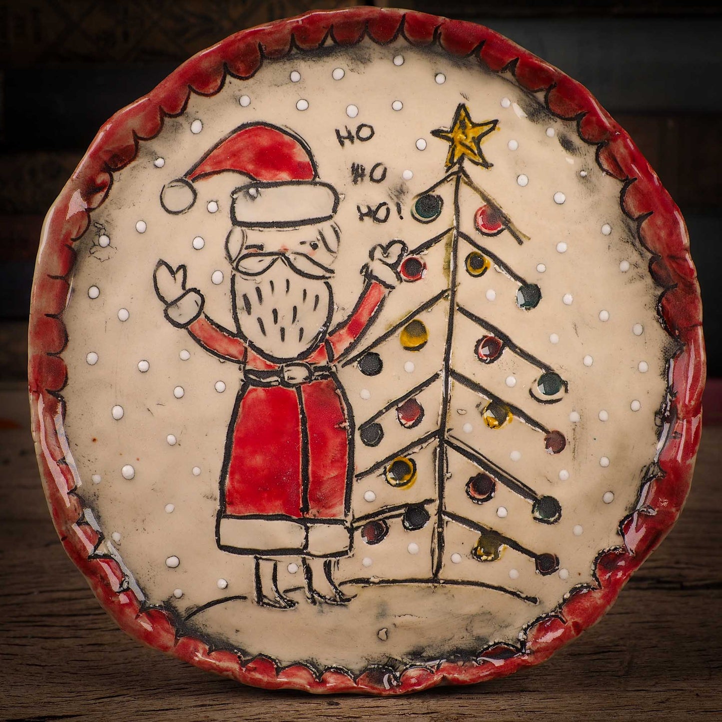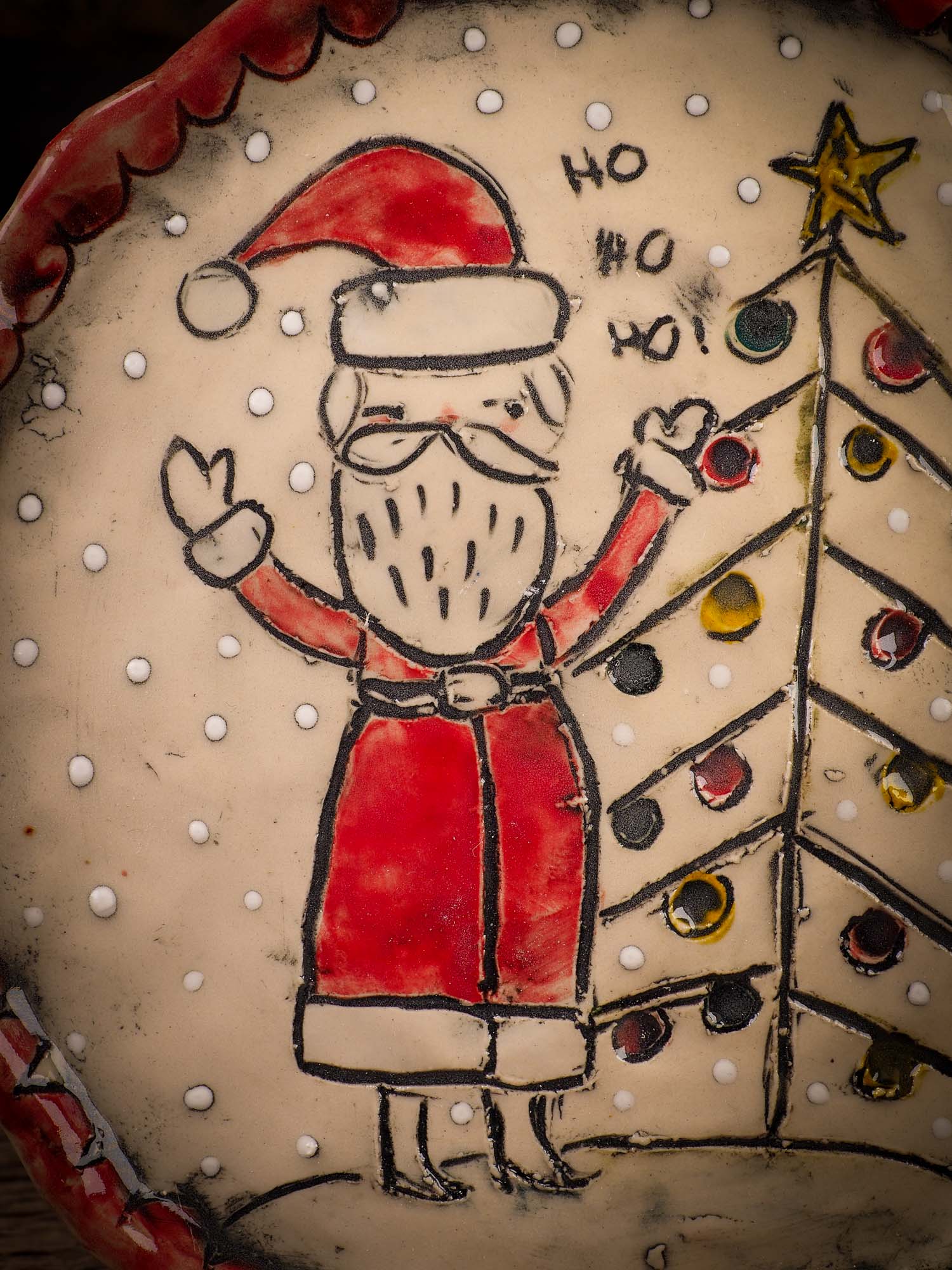 You are looking at original handmade ceramic Christmas Holiday cake dessert plate by Idania Salcido, the artist behind Danita Art. Hand made with glazed stoneware at Idania's ceramic studio, the ornament measures approx. 5 inches diameter, painted and illustrated by the artist.