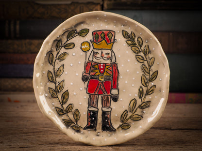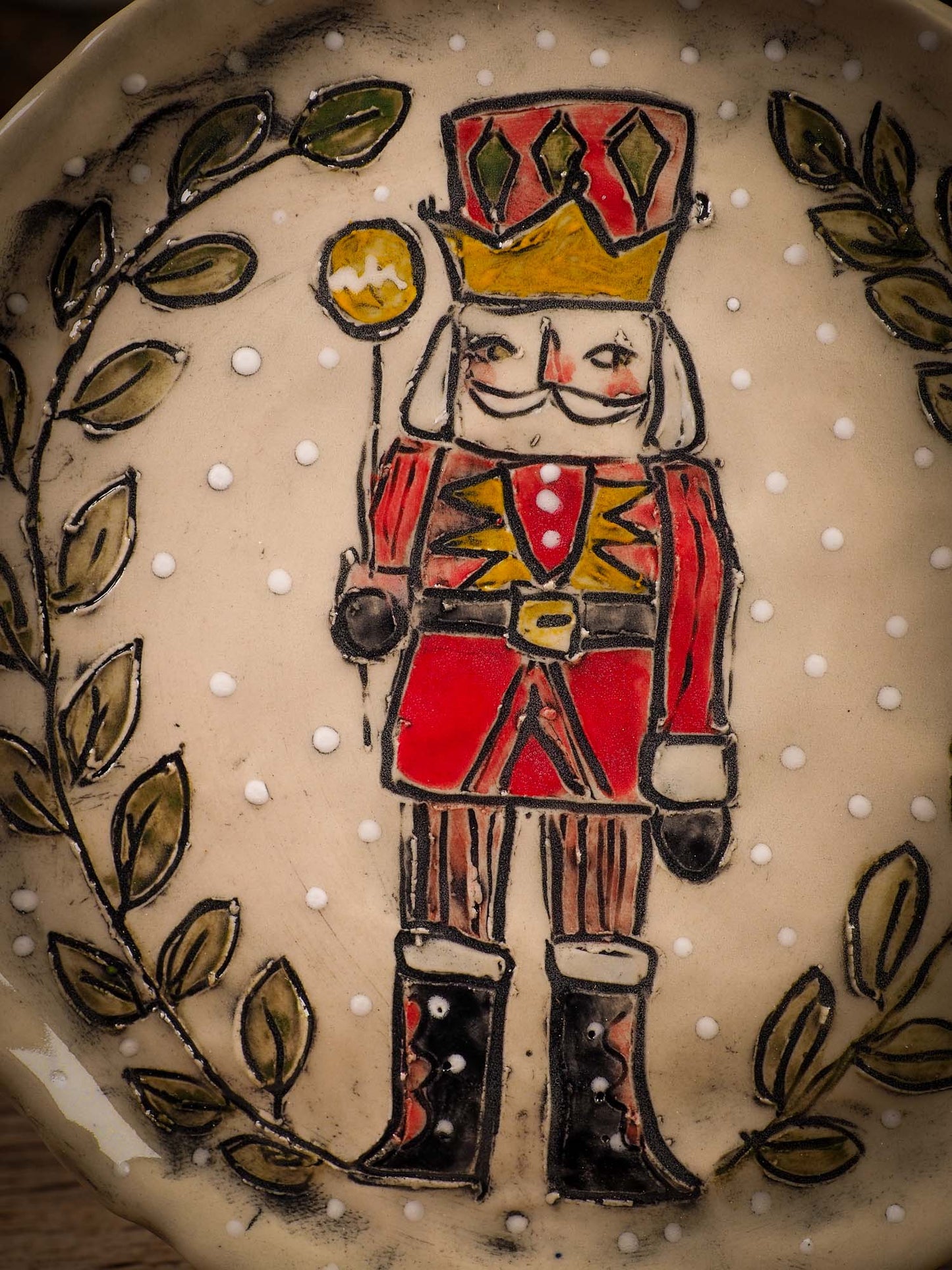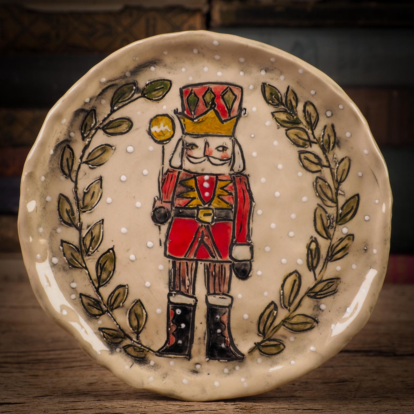 You are looking at original handmade ceramic Christmas Holiday cake dessert plate by Idania Salcido, the artist behind Danita Art. Hand made with glazed stoneware at Idania's ceramic studio, the ornament measures approx. 5 inches diameter, painted and illustrated by the artist.
