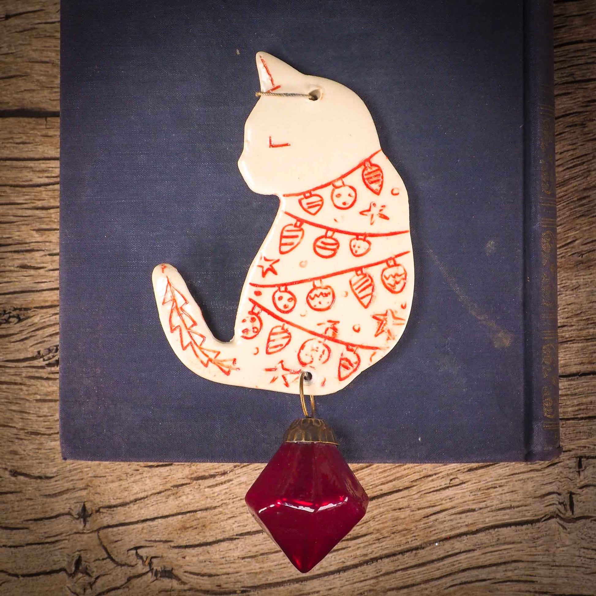 You are looking at original handmade ceramic Christmas and Holiday tree ornament by Idania Salcido, the artist behind Danita Art.Hand made with glazed stoneware at Idania's ceramic studio, the cat ornament measures approx. 6 inches tall and it is hand painted by the artist.