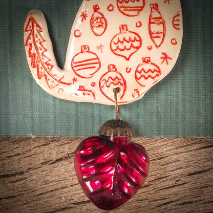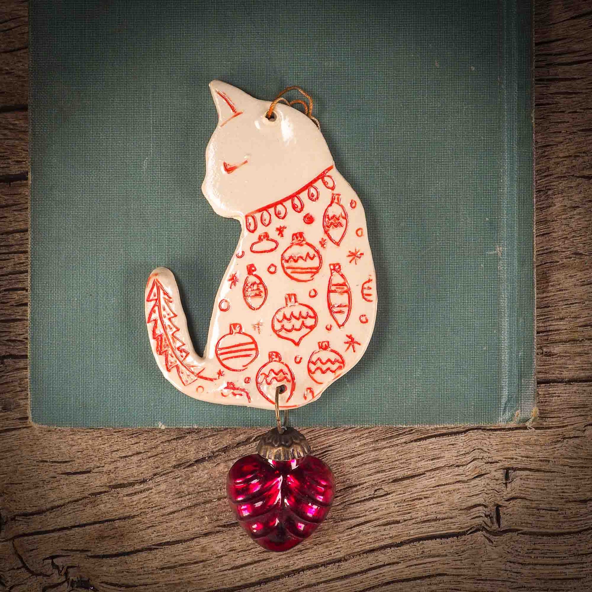 You are looking at original handmade ceramic Christmas and Holiday tree ornament by Idania Salcido, the artist behind Danita Art.Hand made with glazed stoneware at Idania's ceramic studio, the cat ornament measures approx. 6 inches tall and it is hand painted by the artist.