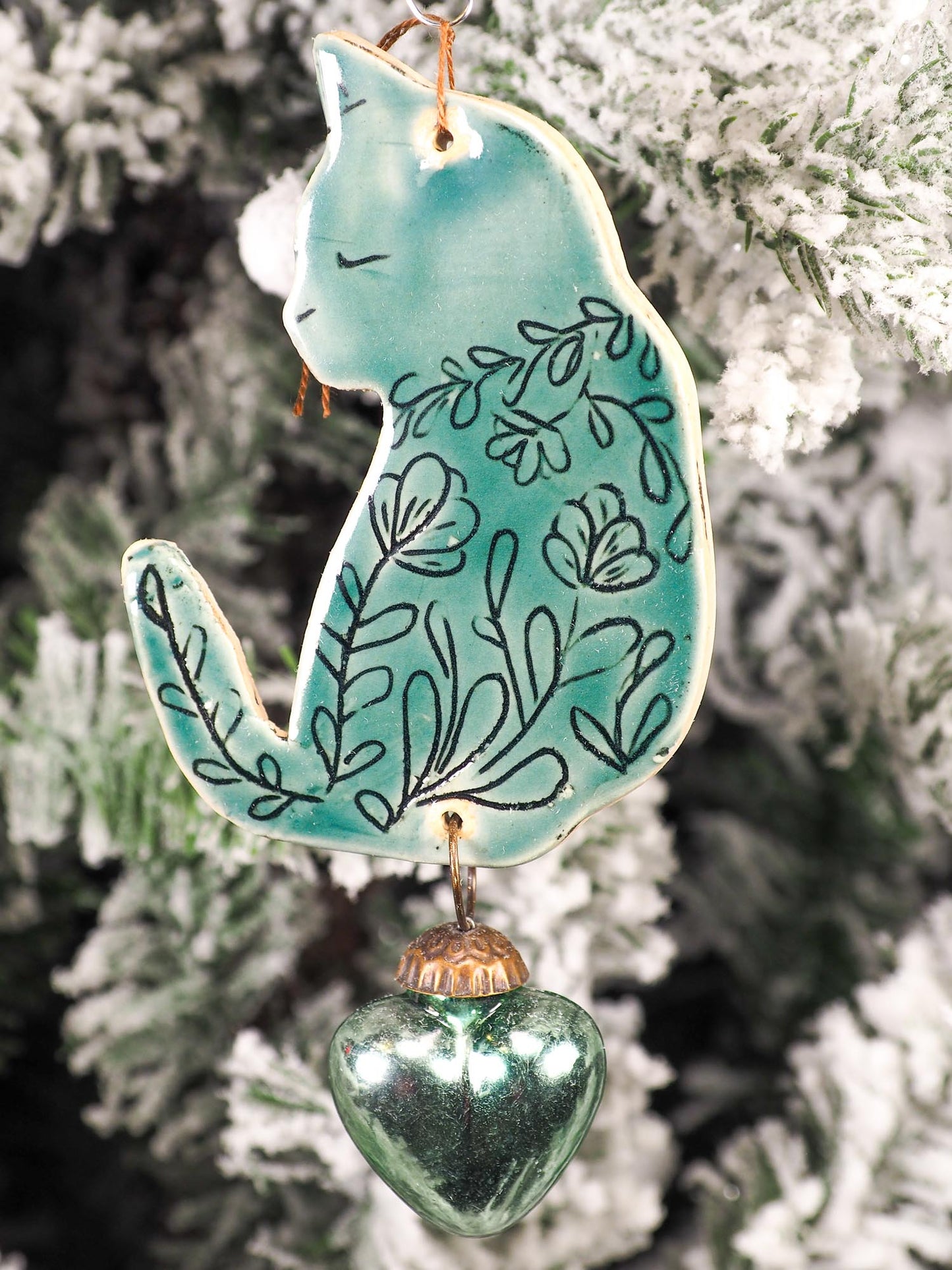 You are looking at original handmade ceramic Christmas and Holiday tree ornament by Idania Salcido, the artist behind Danita Art.Hand made with glazed stoneware at Idania's ceramic studio, the cat ornament measures approx. 6 inches tall and it is hand painted by the artist.
