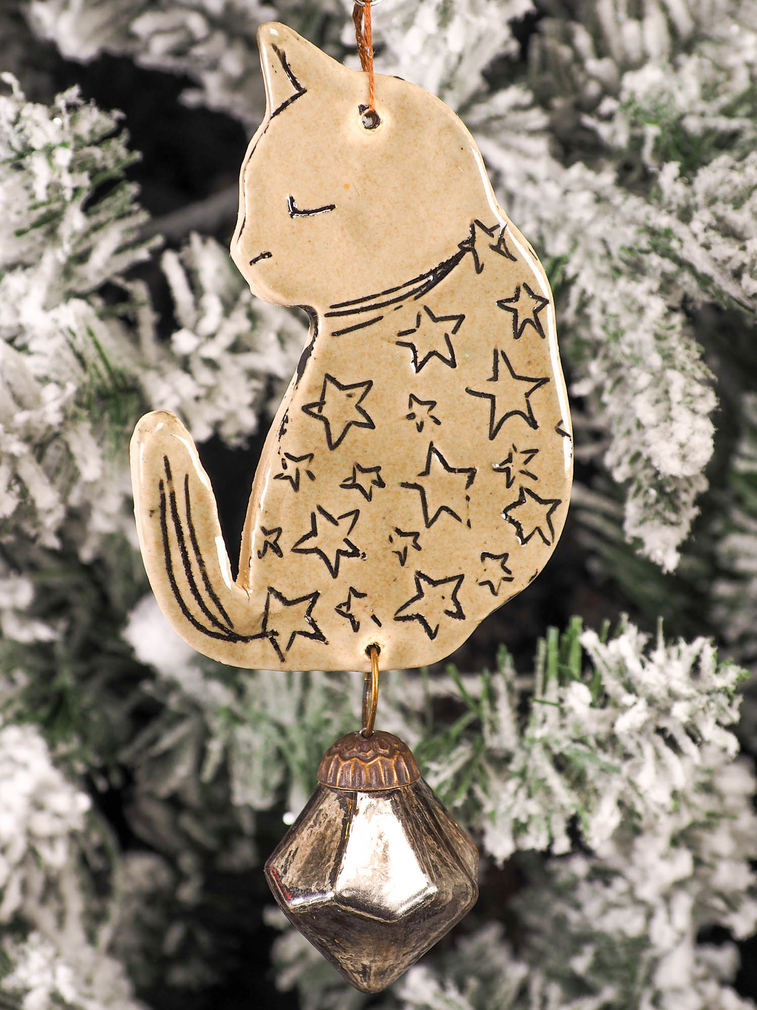 You are looking at original handmade ceramic Christmas and Holiday tree ornament by Idania Salcido, the artist behind Danita Art.Hand made with glazed stoneware at Idania's ceramic studio, the cat ornament measures approx. 6 inches tall and it is hand painted by the artist.