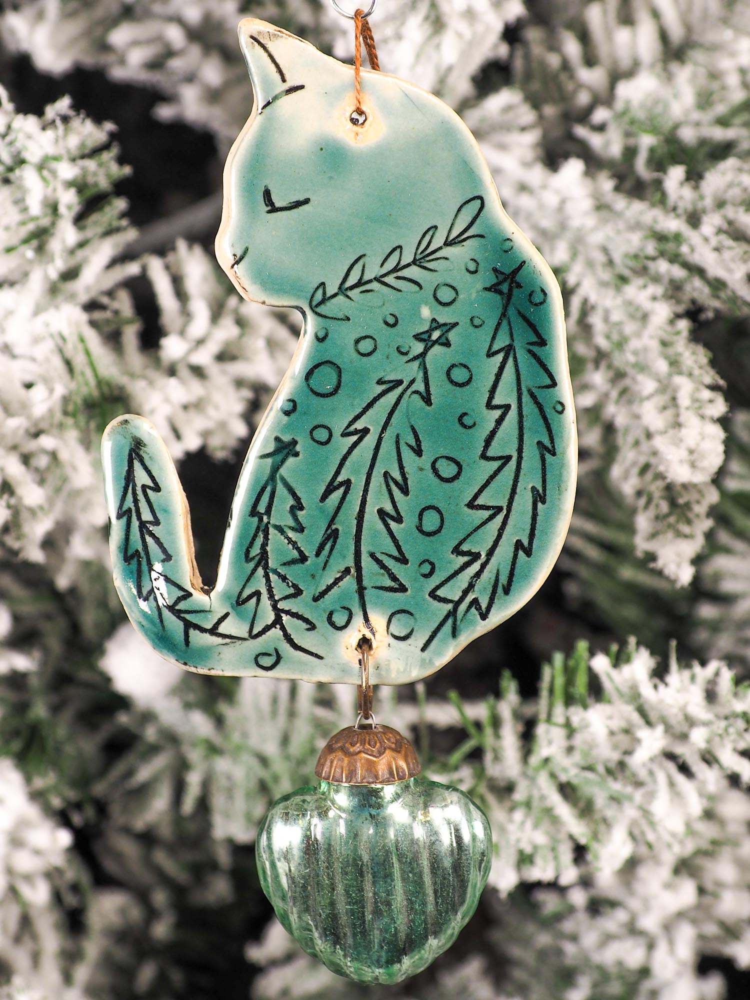 You are looking at original handmade ceramic Christmas and Holiday tree ornament by Idania Salcido, the artist behind Danita Art.Hand made with glazed stoneware at Idania's ceramic studio, the cat ornament measures approx. 6 inches tall and it is hand painted by the artist.