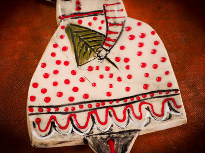 You are looking at original handmade ceramic Christmas and Holiday tree ornament by Idania Salcido, the artist behind Danita Art. Hand made with glazed stoneware at Idania's ceramic studio, the ornament measures approx. 7 inches tall and it is hand painted by the artist.