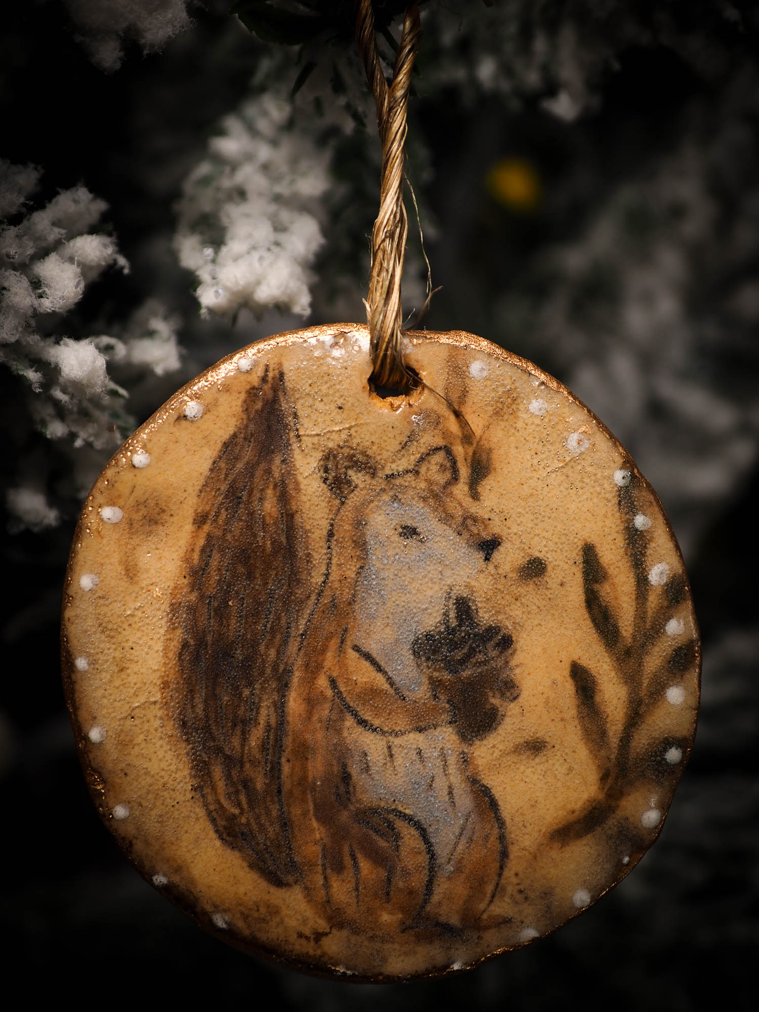 You are looking at original handmade ceramic Christmas and Holiday tree ornament by Idania Salcido, the artist behind Danita Art. Hand made with glazed stoneware at Idania's ceramic studio, the ornament measures approx. 2.5 inches tall and it is hand painted by the artist.