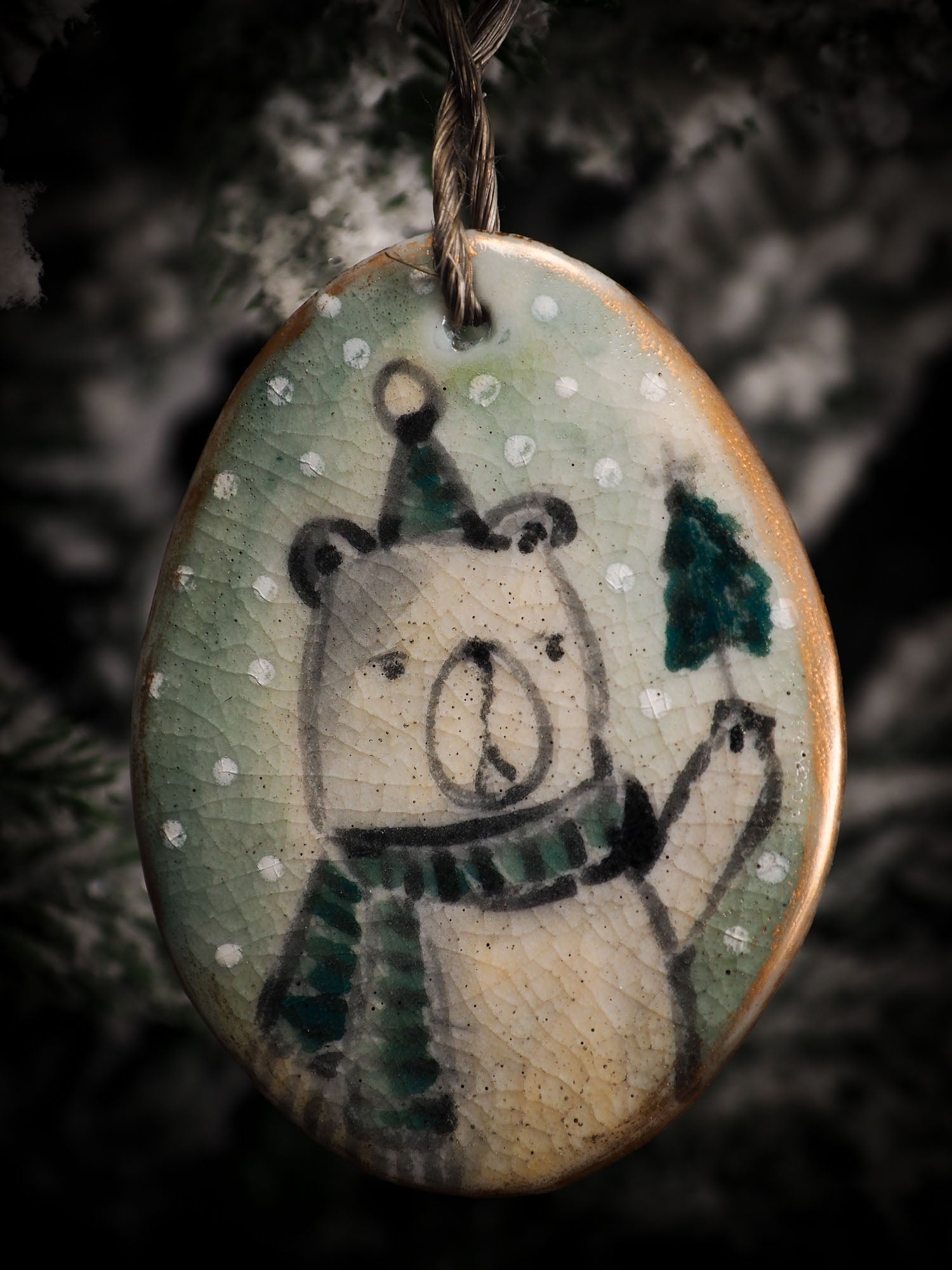 You are looking at original handmade ceramic Christmas and Holiday tree ornament by Idania Salcido, the artist behind Danita Art. Hand made with glazed stoneware at Idania's ceramic studio, the ornament measures approx. 2.5 inches tall and it is hand painted by the artist.