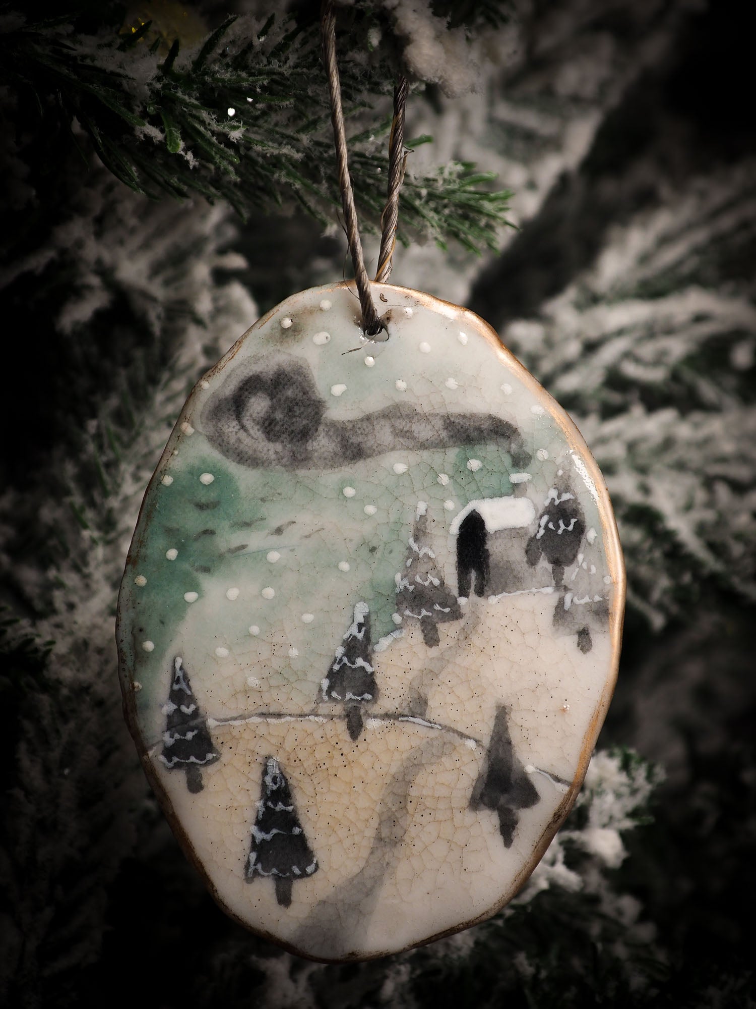 You are looking at original handmade ceramic Christmas and Holiday tree ornament by Idania Salcido, the artist behind Danita Art. Hand made with glazed stoneware at Idania's ceramic studio, the ornament measures approx. 3.5 inches tall and it is hand painted by the artist.