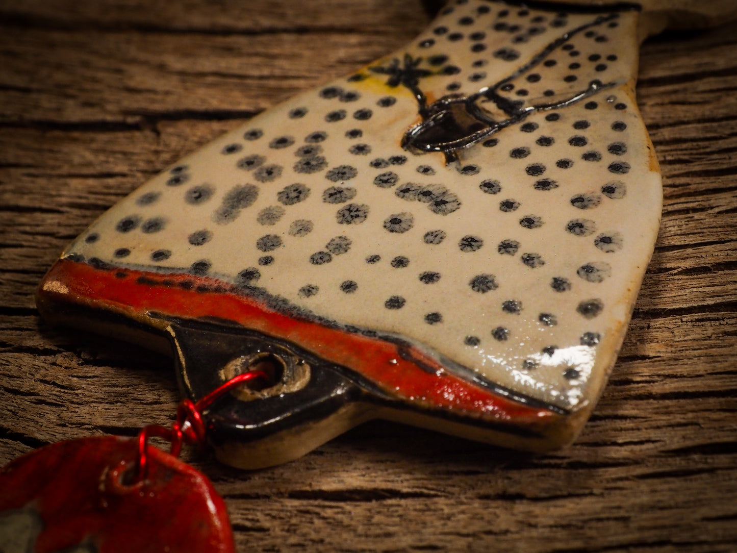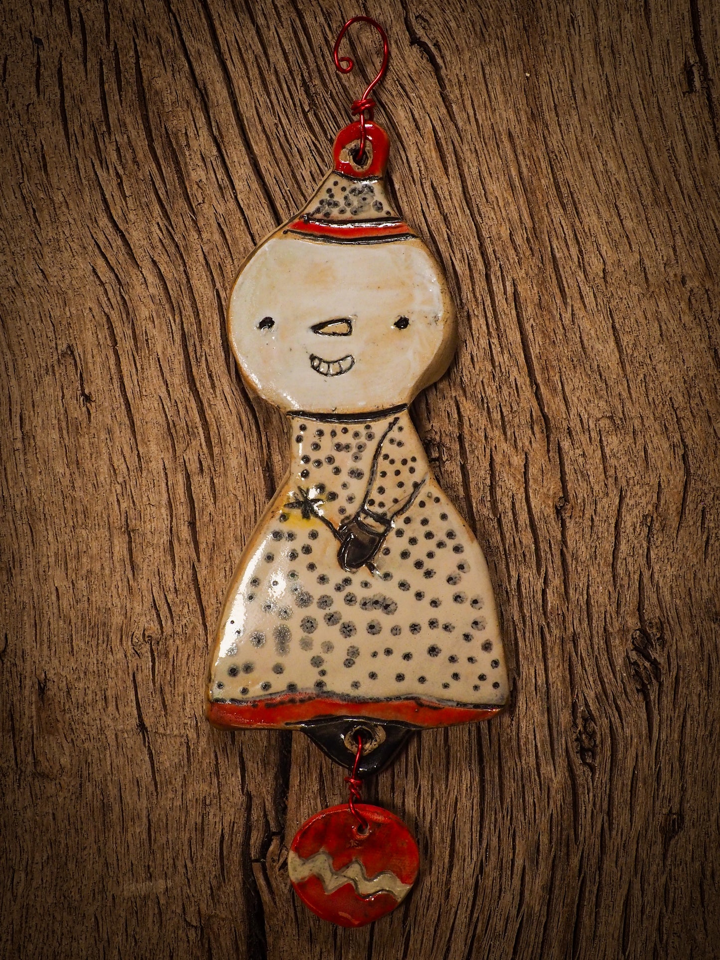 You are looking at original handmade ceramic Christmas and Holiday tree ornament by Idania Salcido, the artist behind Danita Art. Hand made with glazed stoneware at Idania's ceramic studio, the ornament measures approx. 7 inches tall and it is hand painted by the artist.