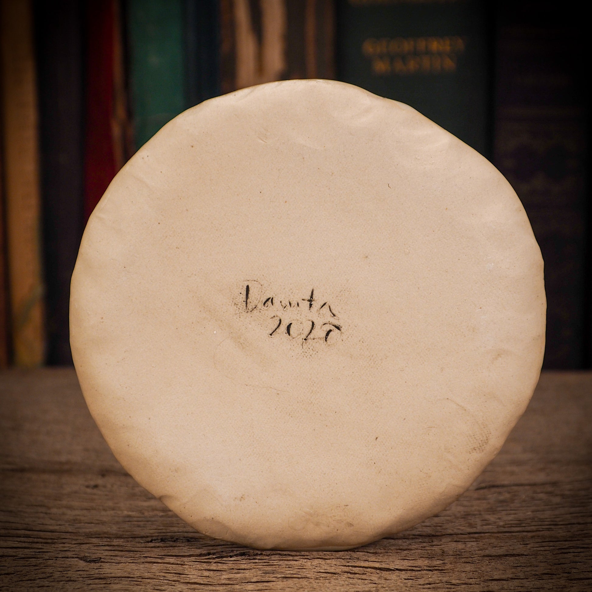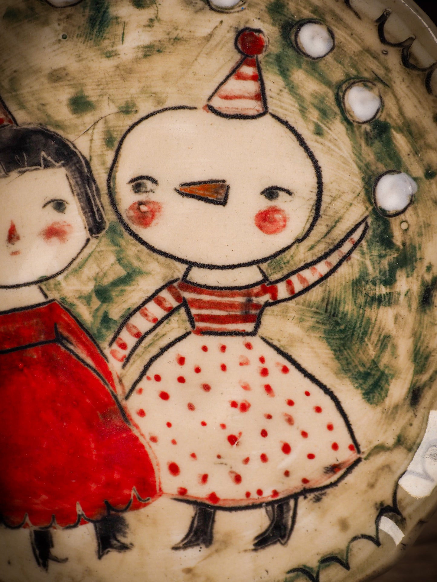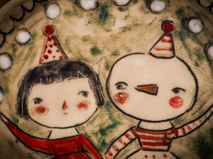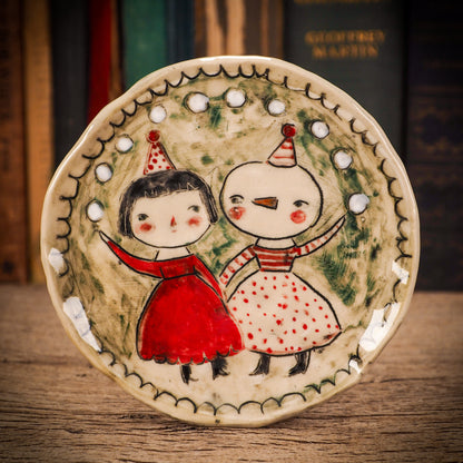 You are looking at original handmade ceramic Christmas Holiday cake plate by Idania Salcido, the artist behind Danita Art. Hand made with glazed stoneware at Idania's ceramic studio, the ornament measures approx. 5 inches diameter, painted and illustrated by the artist.